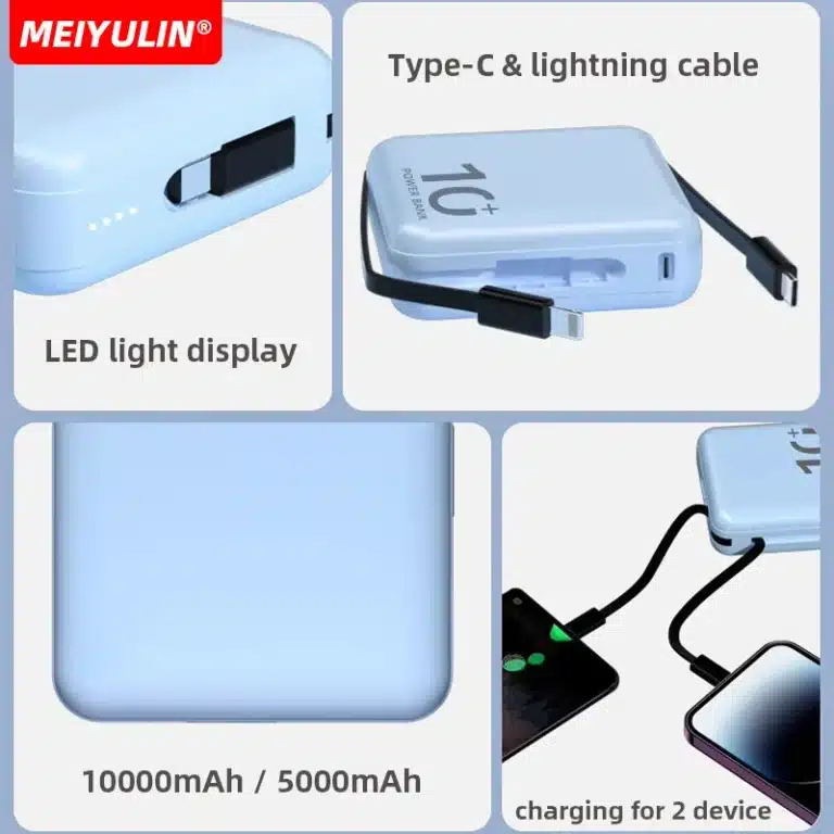 10000mAh Mini Power Bank Built-in Type C Cable 5000mAh Portable Fast Charging Mobile External Battery for iPhone Xiaomi Samsung