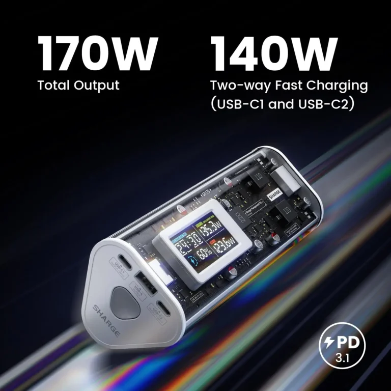 SHARGE Power Bank 24000mAh 170W Output Fast Charge with IPS Smart Screen Display IP66 Waterproof for MacBook Tablet iPhone 15pro