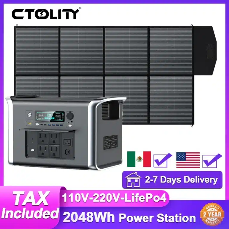 2600W Power Station 400W Solar Panel Portable Solar Generator 2048Wh Lifepo4 Battery 110-220V AC Outlets Power Charging Station