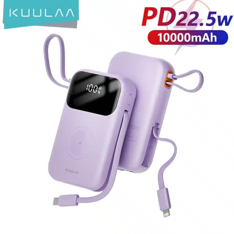 KUULAA 10000mAh Power Bank with Cable for iPhone 16/15/14 Samsung Xiaomi Huawei Portable Charger 22.5W Fast Charging PowerBank