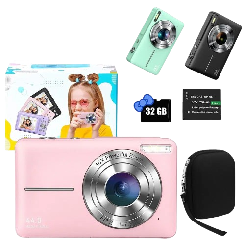 Children’s Digital Camera – 16x Zoom, 1080P 44MP, Compact Camcorder for Beginners