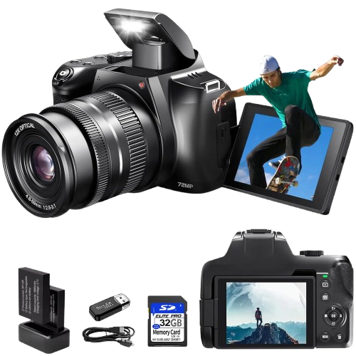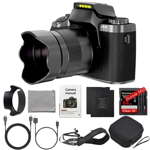 4K 64MP DSLR Camera – 16X Zoom, Auto Focus, 4.0″ Touch Screen, Vlogging