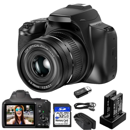 Komery 64MP DSLR Camera – 10X Zoom, 4K Video, Vlog Camcorder, YouTube Webcam