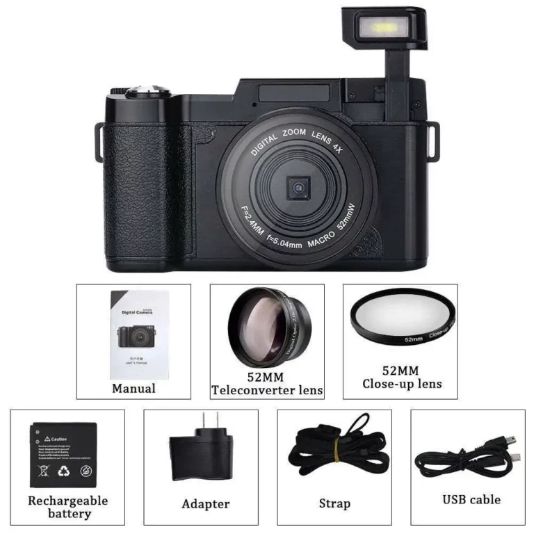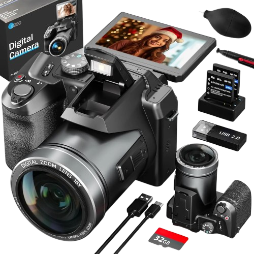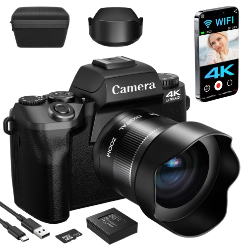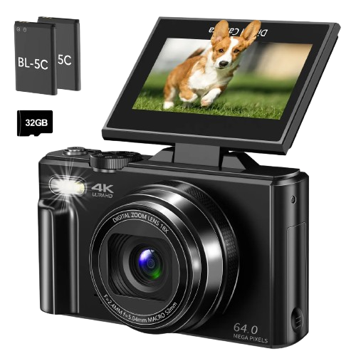 4K 64MP Digital Camera – WiFi Vlogging, 4″ Touch Screen