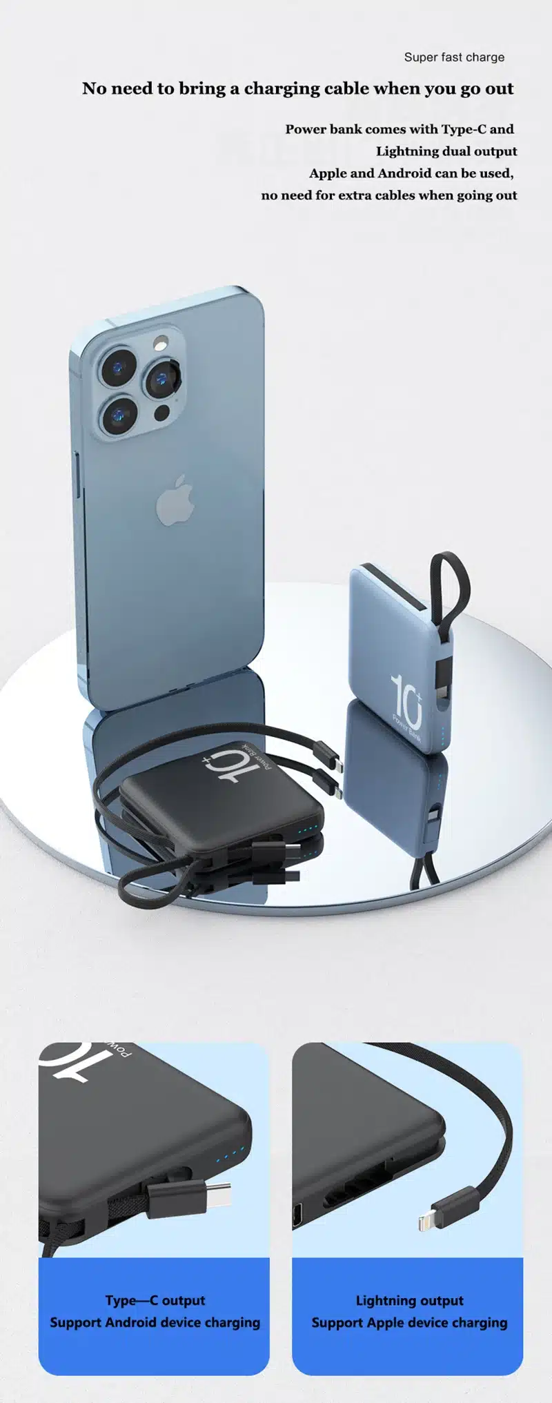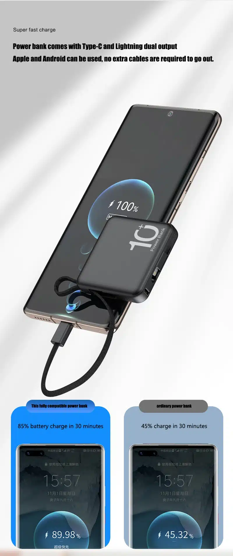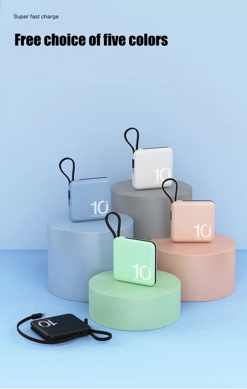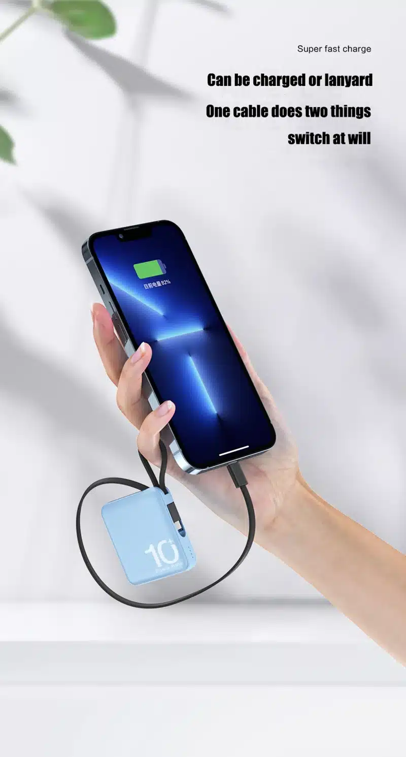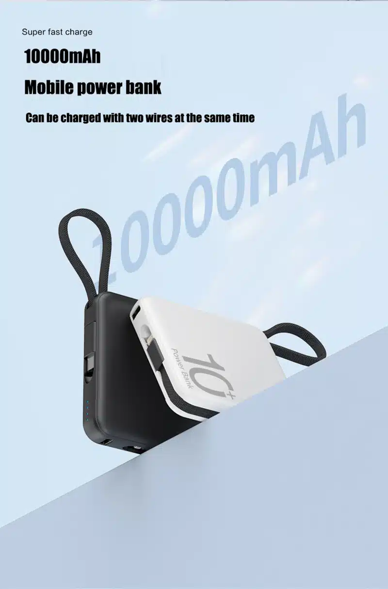10000mAh Portable Power Bank built-in Type-C & lightning cable 5000mah 22.5W Fast Charging External Auxiliary Battery Powerbank for iPhone 15 14 13 Samsung Xiaomi HUAWEI
