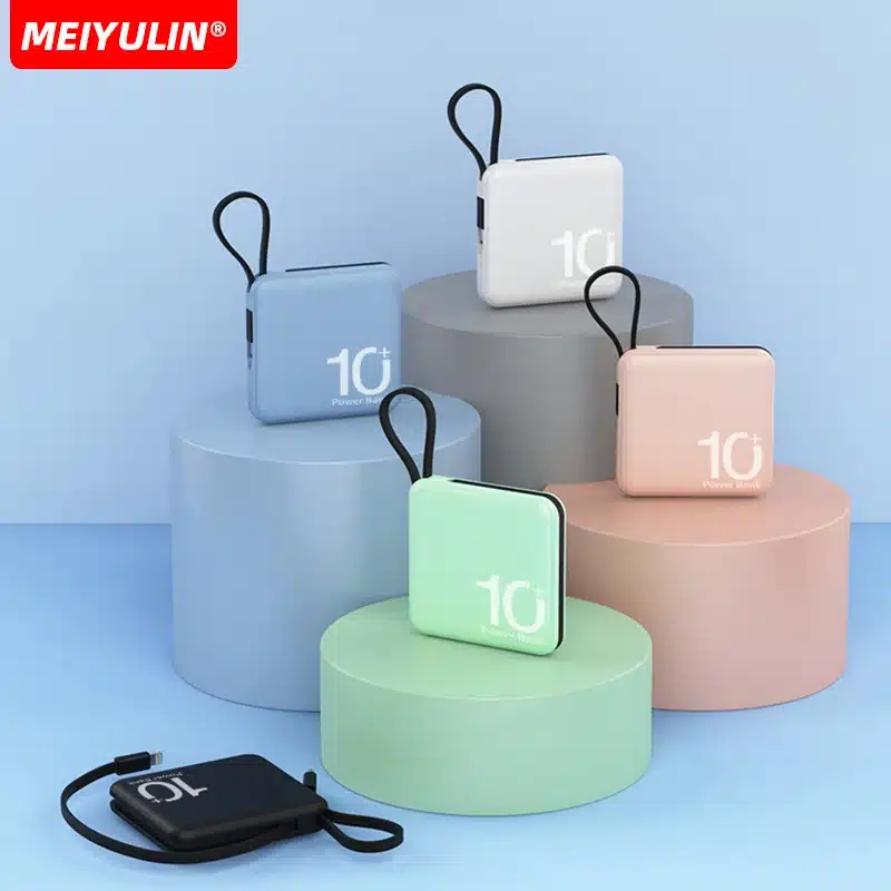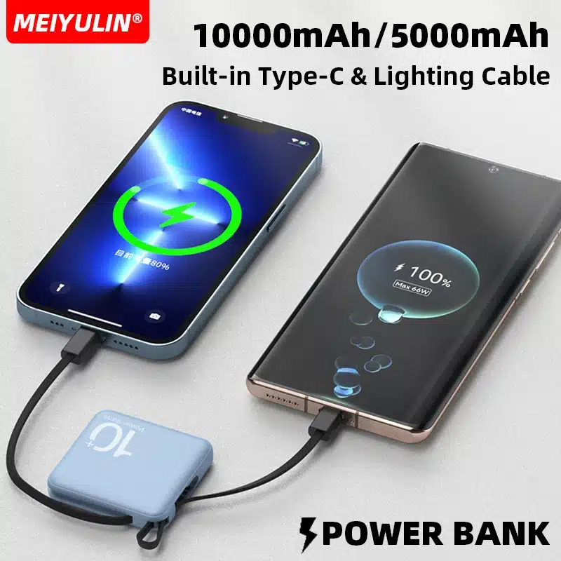 10000mAh Portable Power Bank built-in Type-C & lightning cable 5000mah 22.5W Fast Charging External Auxiliary Battery Powerbank for iPhone 15 14 13 Samsung Xiaomi HUAWEI