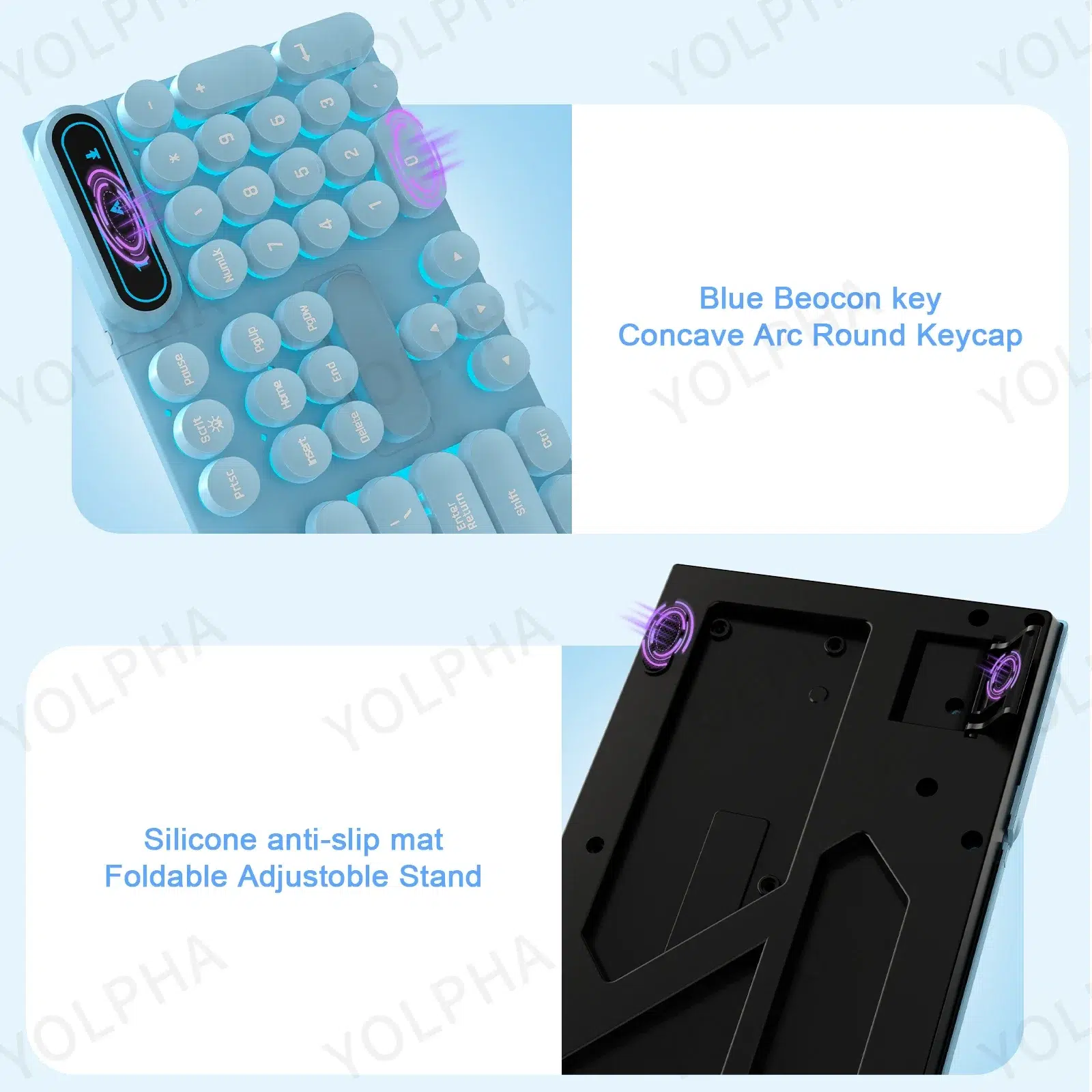 - Blue Keyboard: Comes with a Blue backlight shining through the keycaps. The light can also be turned off as desired.
