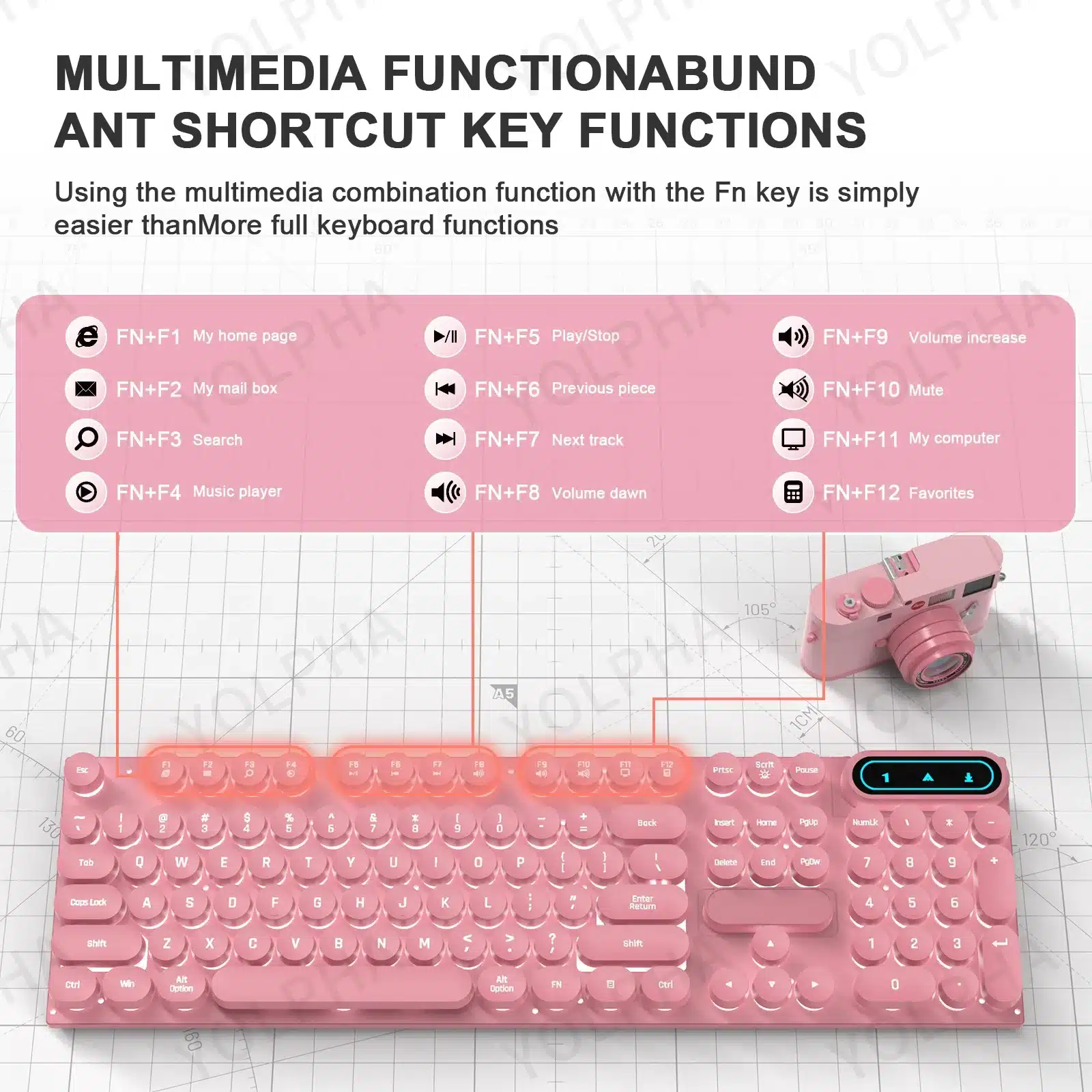 - Pink Keyboard: Equipped with a White backlight visible through the keycaps. The backlight can be turned off.