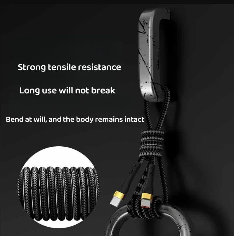Experience ultra-fast charging with this 120W 6A PD Type-C cable designed for USB Type-C devices including iPhone, Samsung, Xiaomi, POCO, and more. 🌟 Featuring braided material for durability and enhanced protection, it supports PD fast charging and adapts intelligently to various protocols for efficient power delivery.