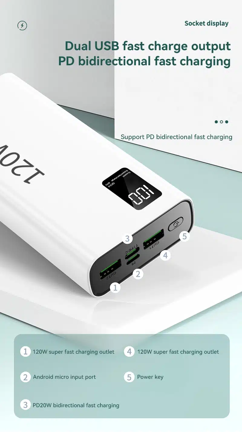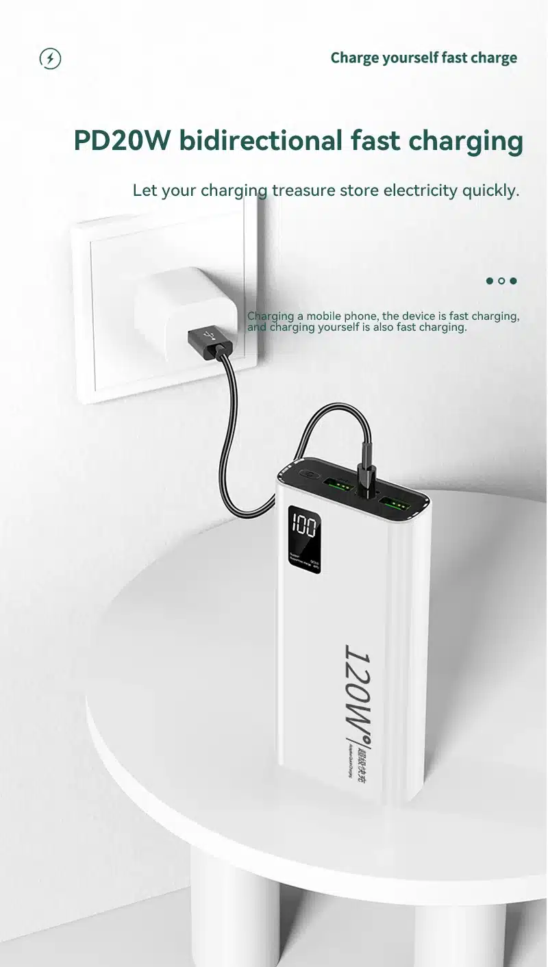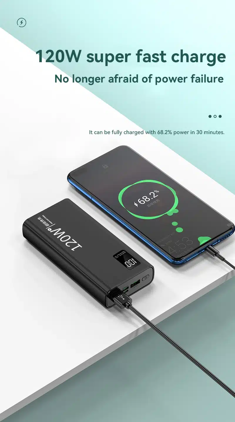 Despite its massive capacity, this power bank is surprisingly compact and lightweight, making it ideal for travel, outdoor adventures, or everyday use. Its sleek and ergonomic design fits comfortably in your hand or pocket, allowing you to carry it with ease wherever you go. Whether you’re commuting to work, exploring the great outdoors, or simply relaxing at home, this power bank provides reliable backup power whenever you need it most.