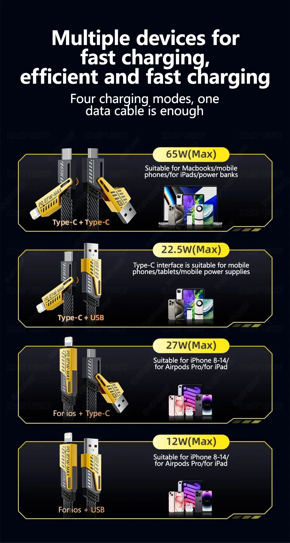 4in1 Type C to Type C 65W Fast Charging Cable for iPhone Samsung