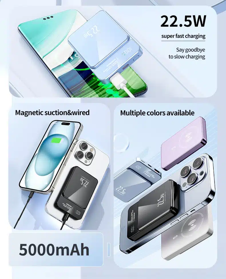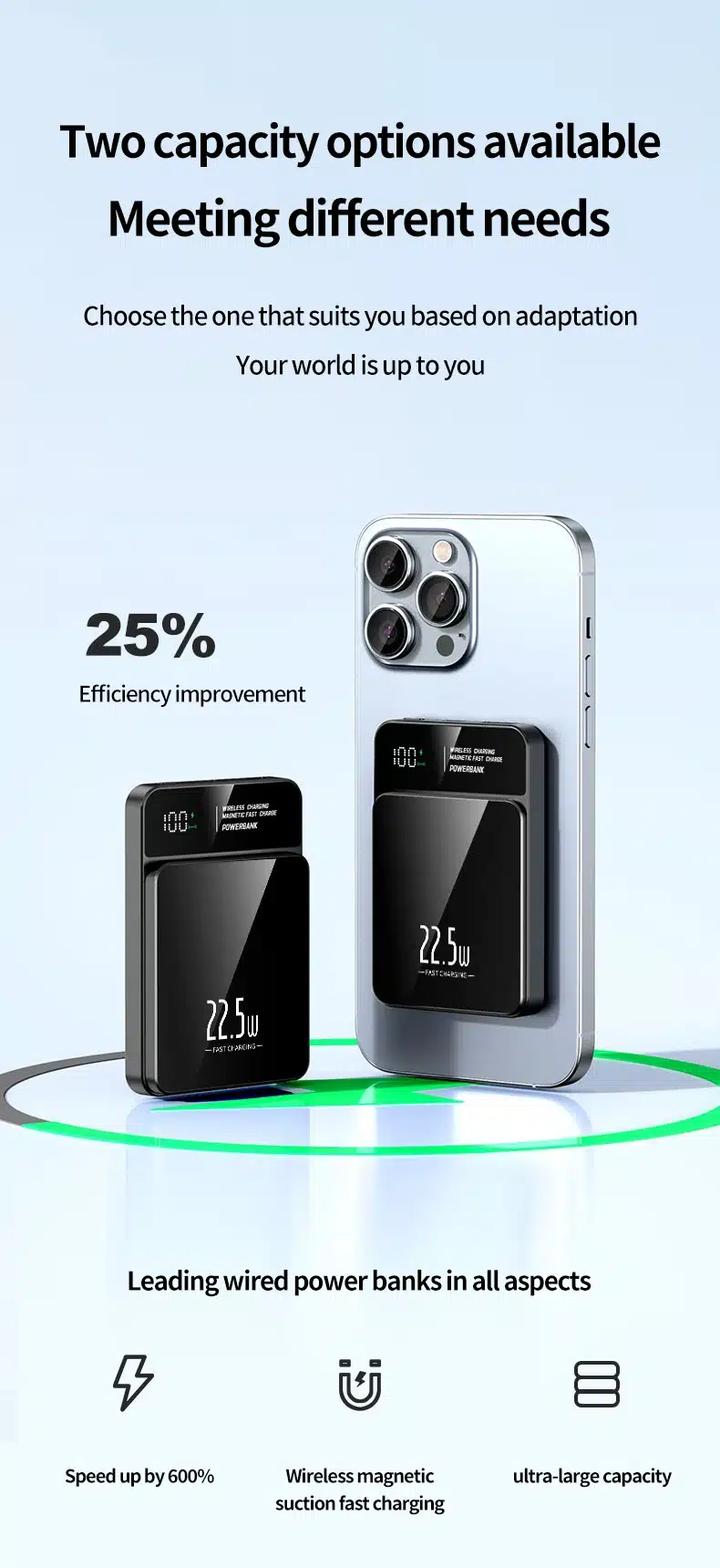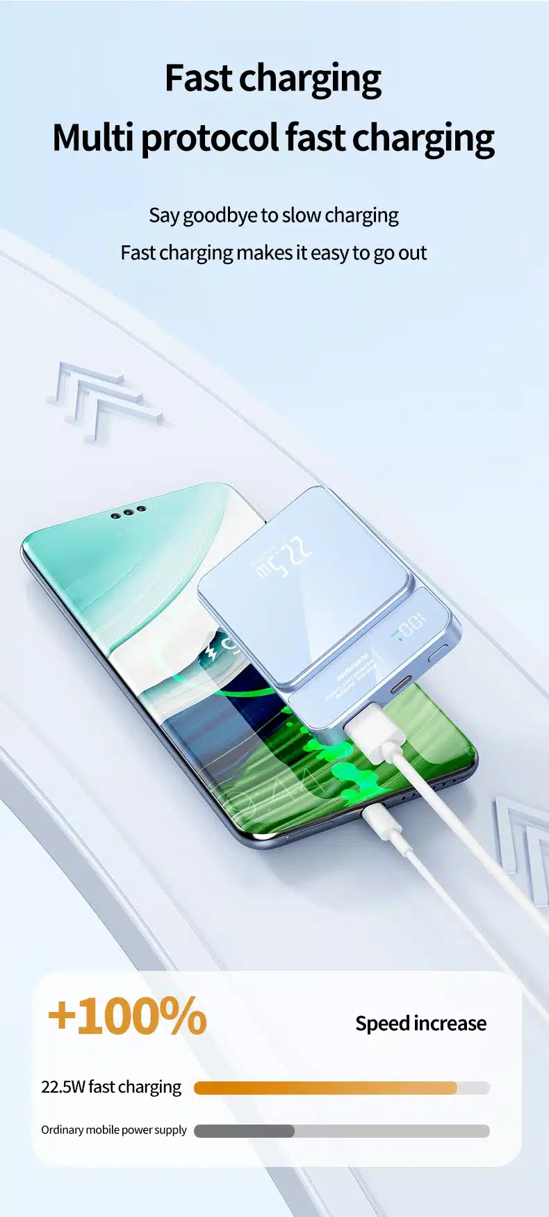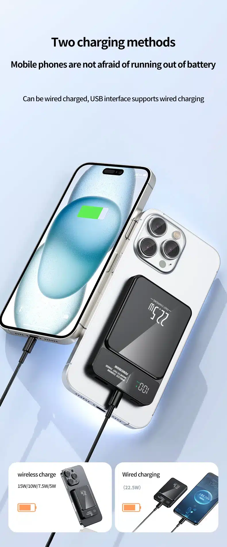 The magnetic adsorption function is only suitable for iPhone 12/13/14/15 series. To achieve better adsorption effect, it is recommended to use a mobile power bank on a phone without a phone case.
