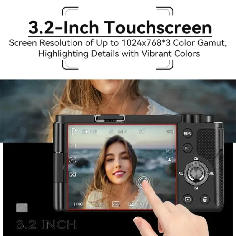 Capture stunning photos and videos with this advanced mirrorless digital camera featuring an 8.0MP SONY CMOS IMX415 sensor and a 1/2.8″ sensor size for sharp, vibrant images. 📷 The 3.2″ IPS touch LCD screen with 270° side-flip design offers flexible angles and brilliant color display (1024×768 resolution) for easy framing and reviewing your shots.