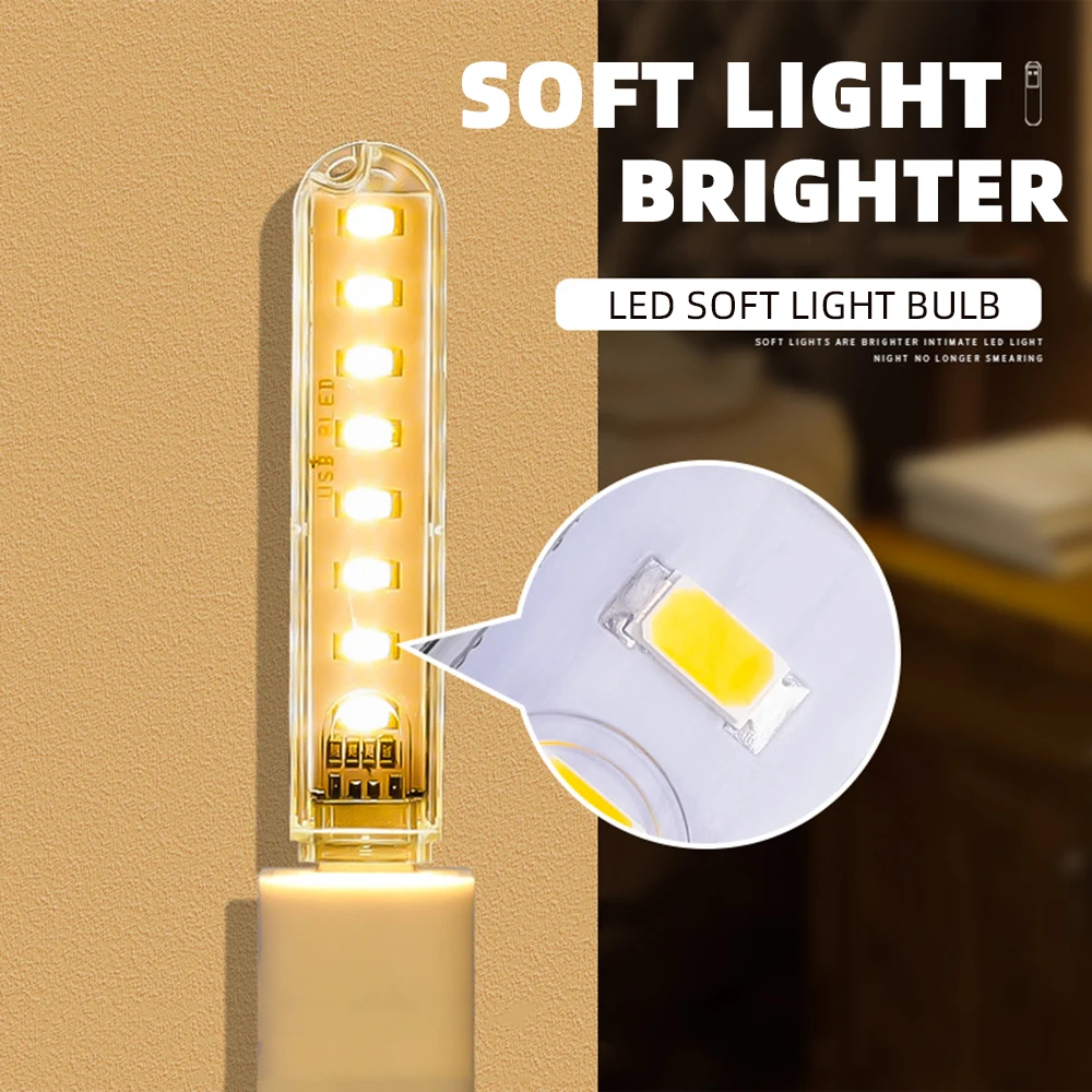 UYOKI 5pcs portable USB LED strip lights with bright white or warm light, 5V low power use, compact design, and universal USB compatibility. Perfect for reading, camping, desk work, travel, and emergency lighting.