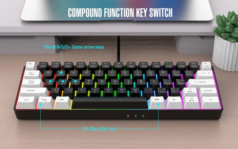 60% Wired RGB Gaming Keyboard – Compact, Waterproof, Mac/PC