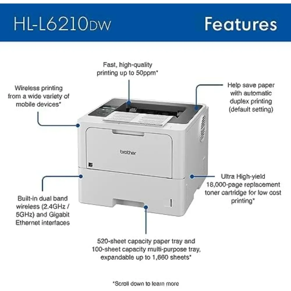 A for HL-L6210DW Business Monochrome Laser Printer with Wireless