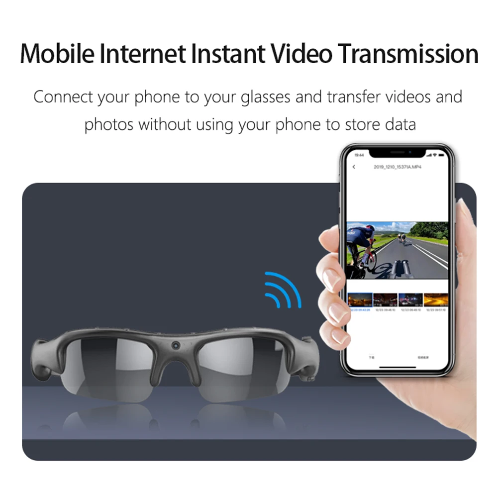AI Smart Glasses with 1080P HD camera and polarized lenses. WiFi support and multi-language options included. Ideal for sports, security, and video recording.