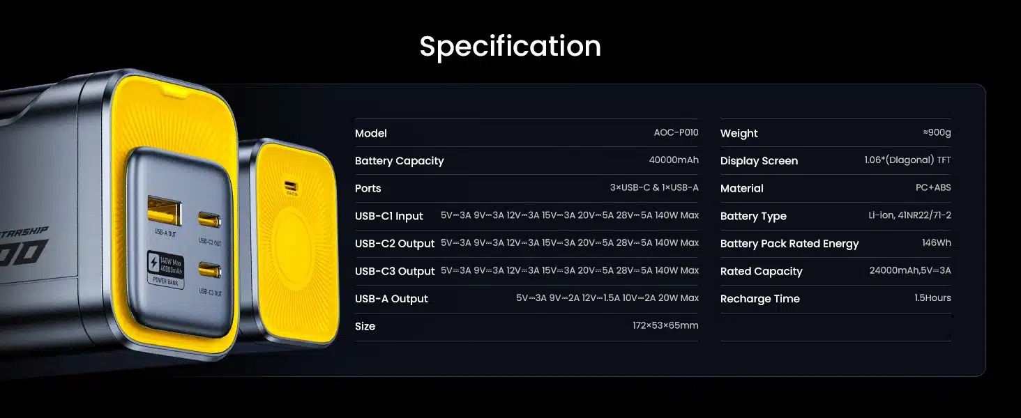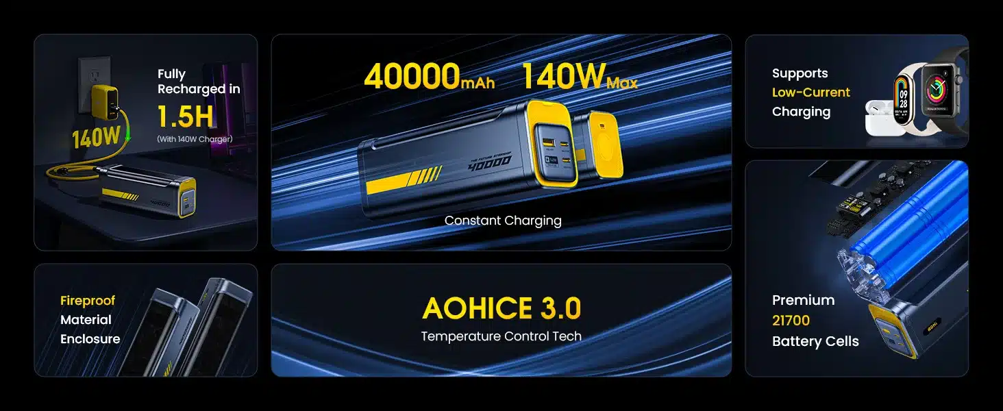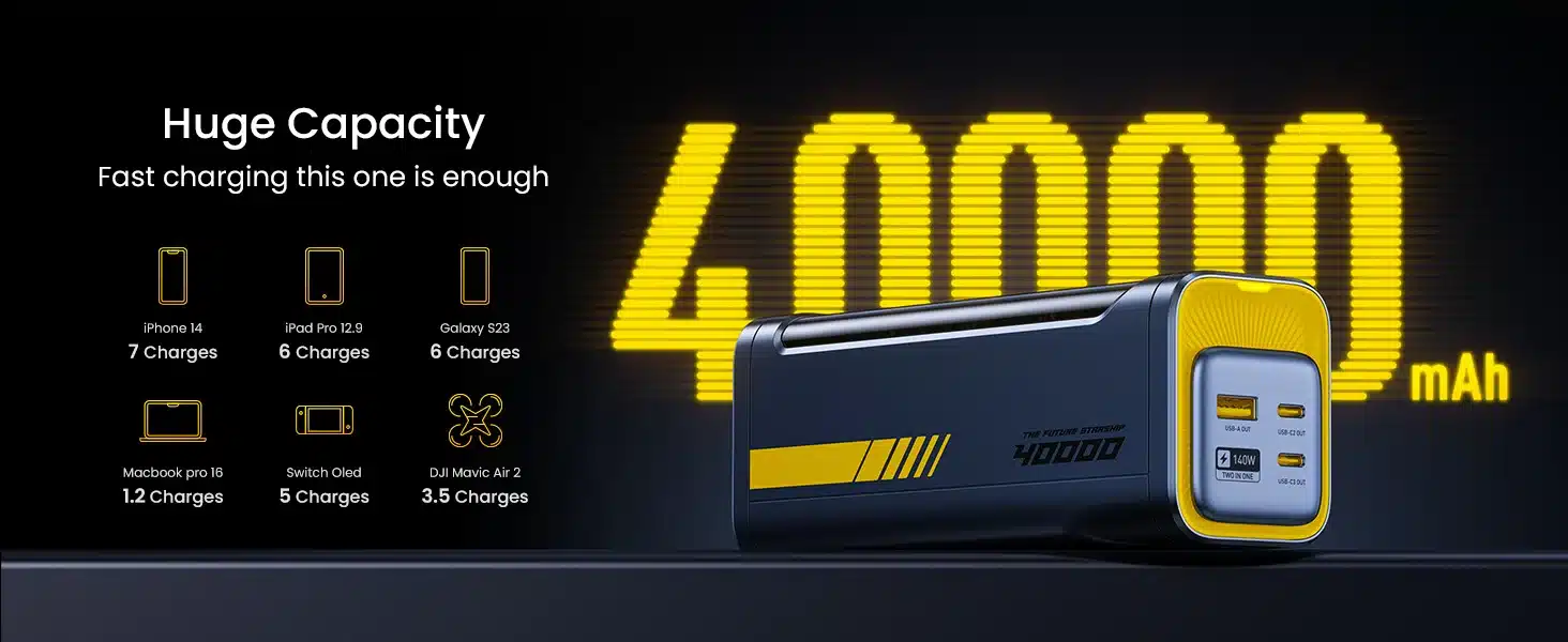 2. Real 40000mAh, 140W MAX power, no false advertising