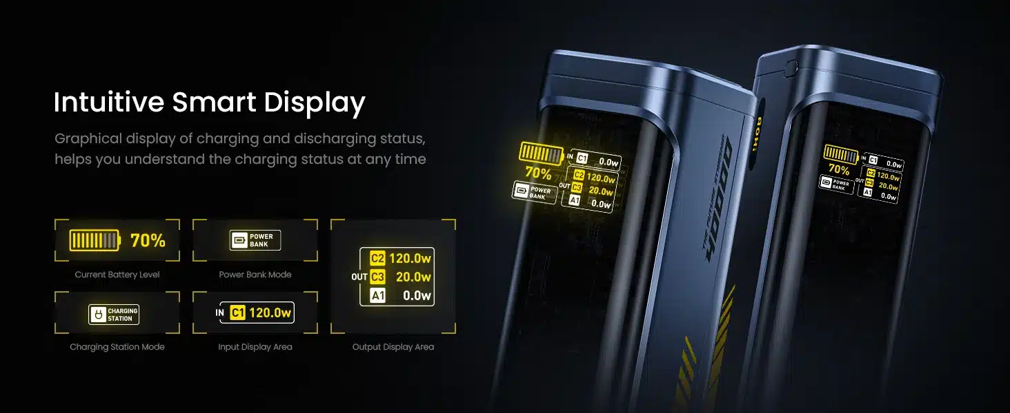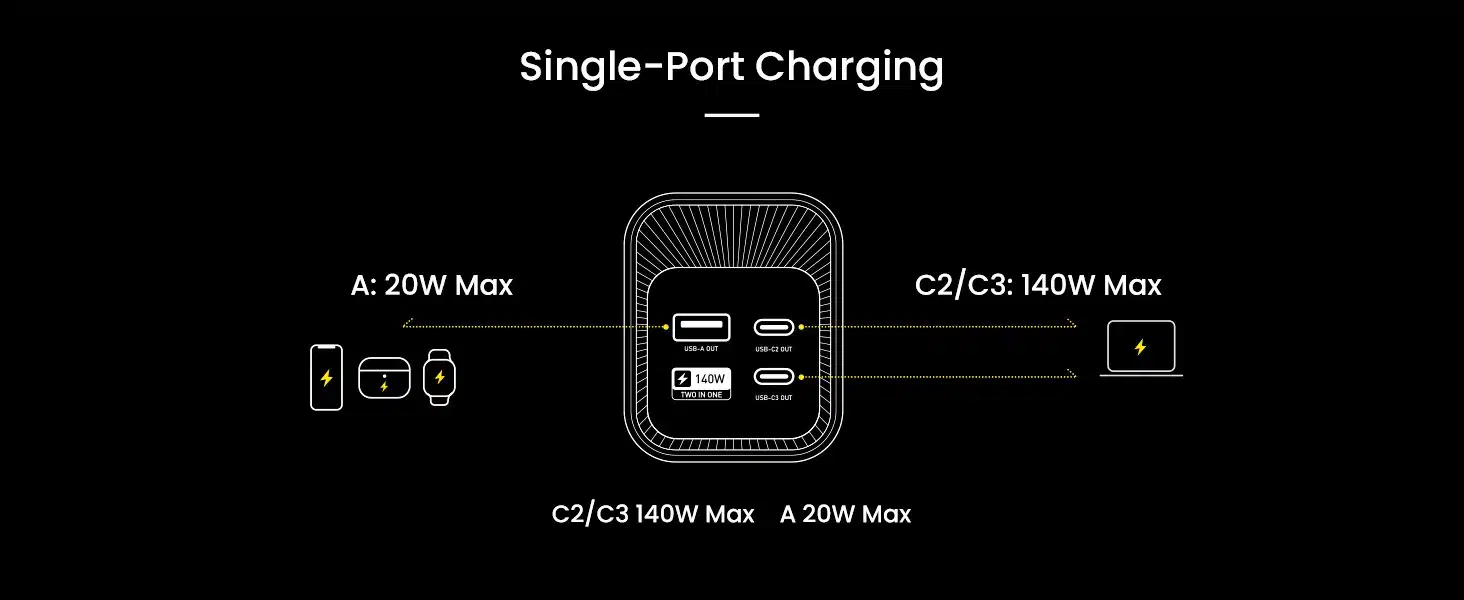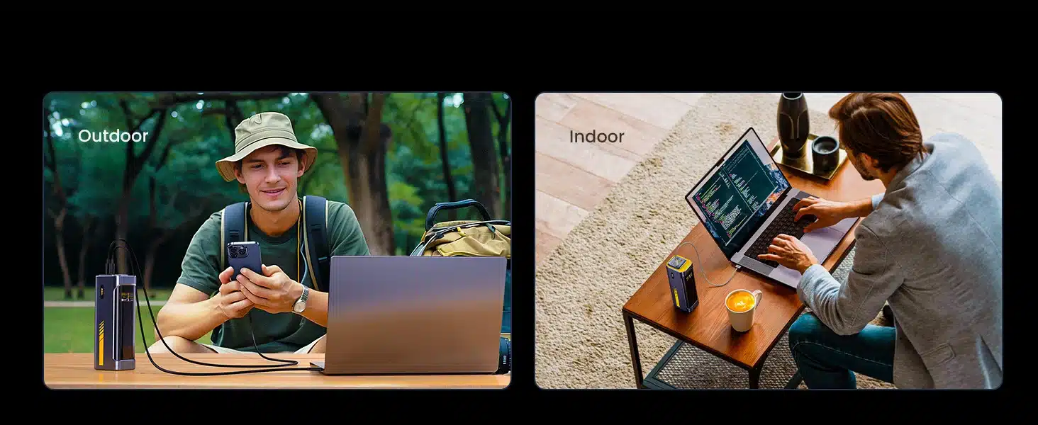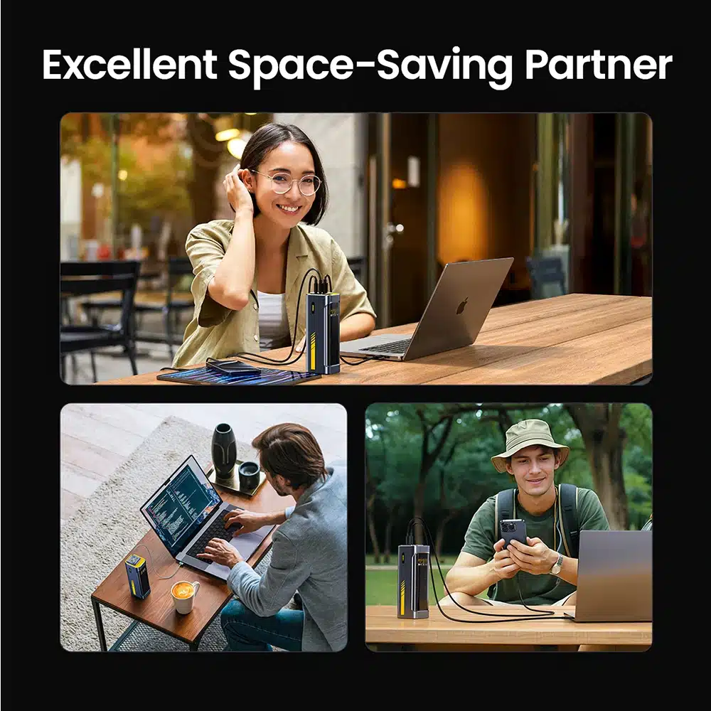Compact as a can (2.09in*2.56in*6.77in), it features three USB-C 140W ports and one USB-A port to accommodate your daily needs and a variety of fast-charging options. It’s ideal for keeping devices powered up during travel and commutes, perfect for professionals who need a reliable laptop power bank and efficient charging station.