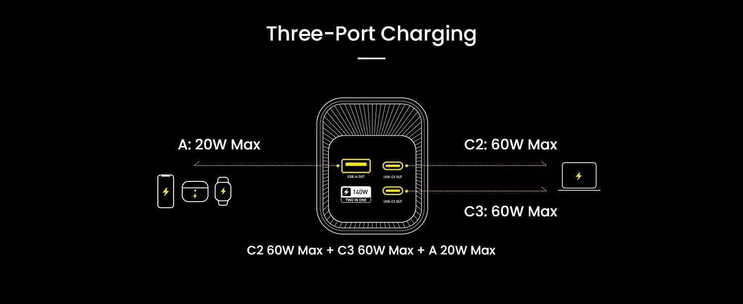 4. The first dual C-ports are both 140W, which can be paired with high-power small appliances or devices (such as soldering irons)