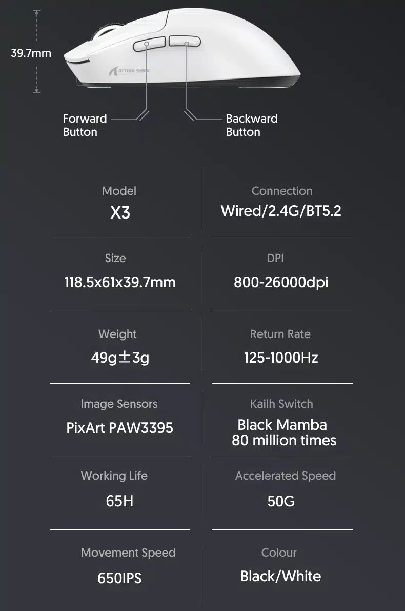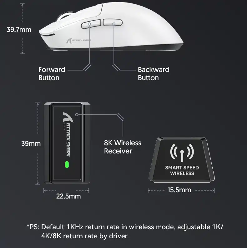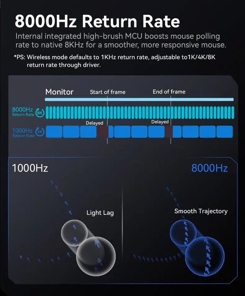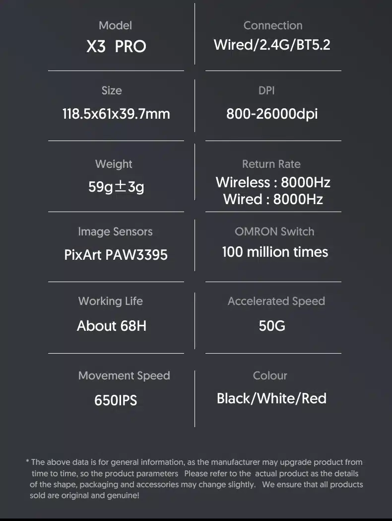 Note: The X3Pro mouse adjusts its polling rate based on the usage environment. Generally, the faster the movement speed, the quicker the button response, and the higher the polling rate.