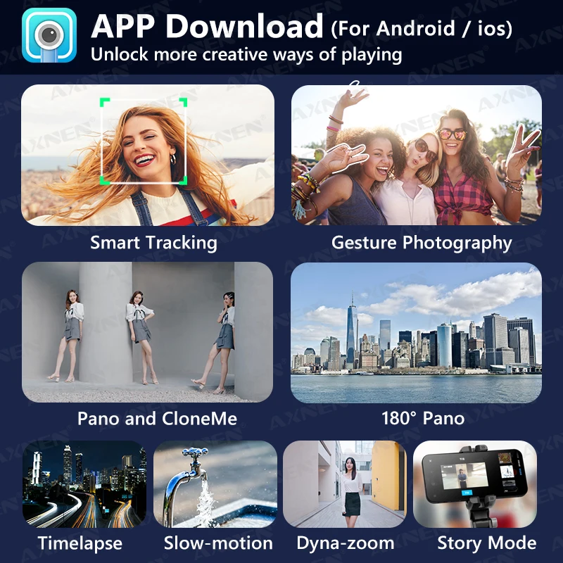 Unlock creative video and photo possibilities with the AXNEN Q18, perfect for vlogging, low-angle shots, and steady panoramic captures. The included app and Bluetooth remote make capturing moments effortless and professional.