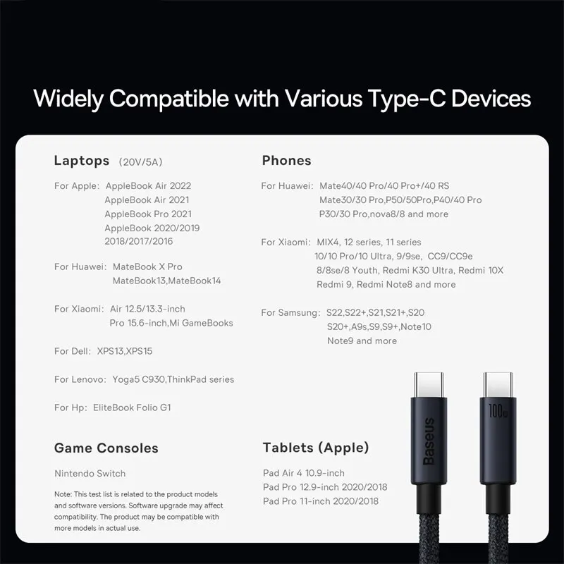 With Type-C to Type-C connectors, this cable ensures compatibility with a wide range of modern devices, from smartphones to laptops and more.
