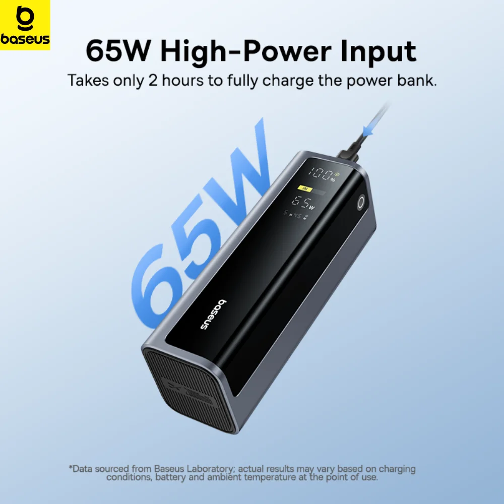 - Rapid Recharge: Charges fully in 2 hours with 65W high-speed input.