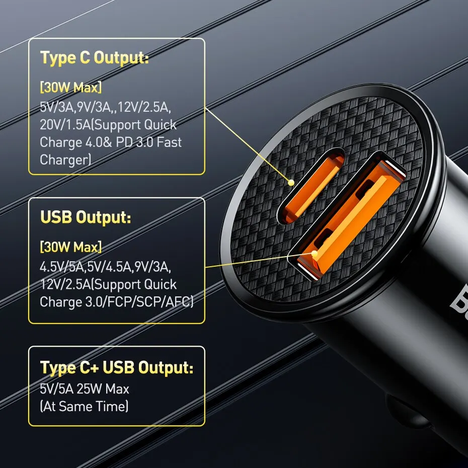 ⚡ BASEUS 30W Dual Port Fast Car Charger 🚗🔋