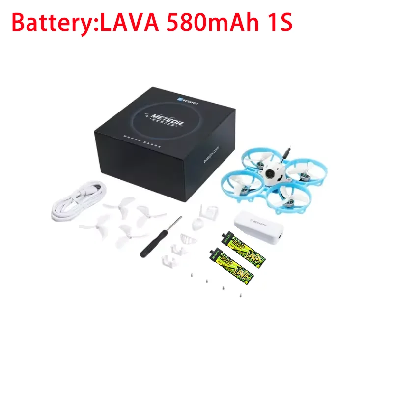 • Package includes 2 BT2.0 550mAh batteries, Type-C USB cable, battery charger and voltage tester, USB Type-C adapter, 4-pin adapter cable, 4 spare 45mm 3-blade props, screwdriver, screws, and canopy accessories.