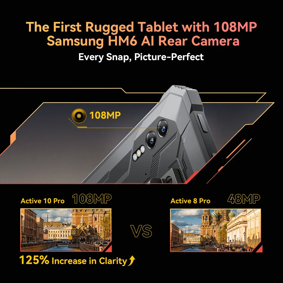 Rugged 11-inch tablet with MediaTek Dimensity 7300, 12GB RAM, 108MP camera, 30,000mAh battery, 5G connectivity, and MIL-STD-810H durability.