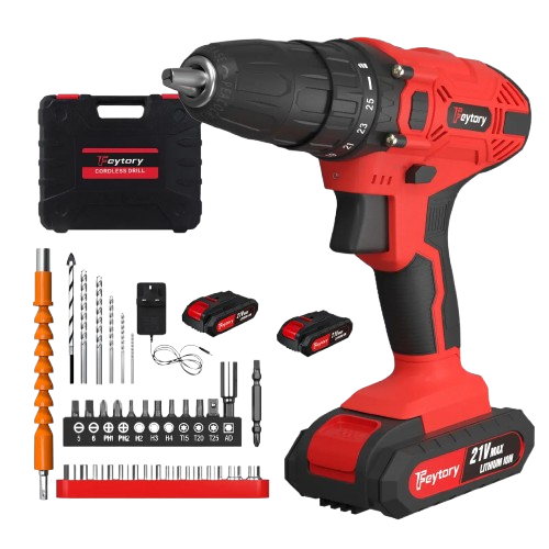 21V Cordless Electric Drill – 200Nm Max Torque, 2-Speed Variable, Compact, with 29-Piece Accessory Kit