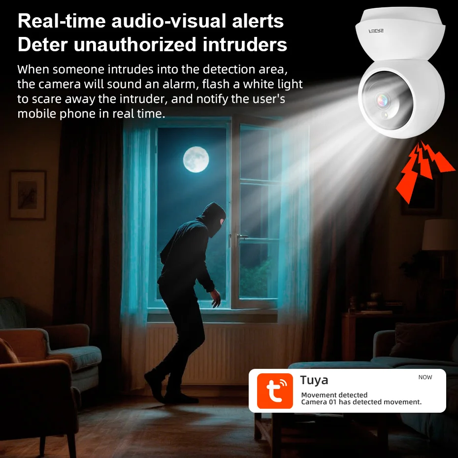 - AI Motion Detection: Detects human movement accurately and sends instant alerts to your mobile device.