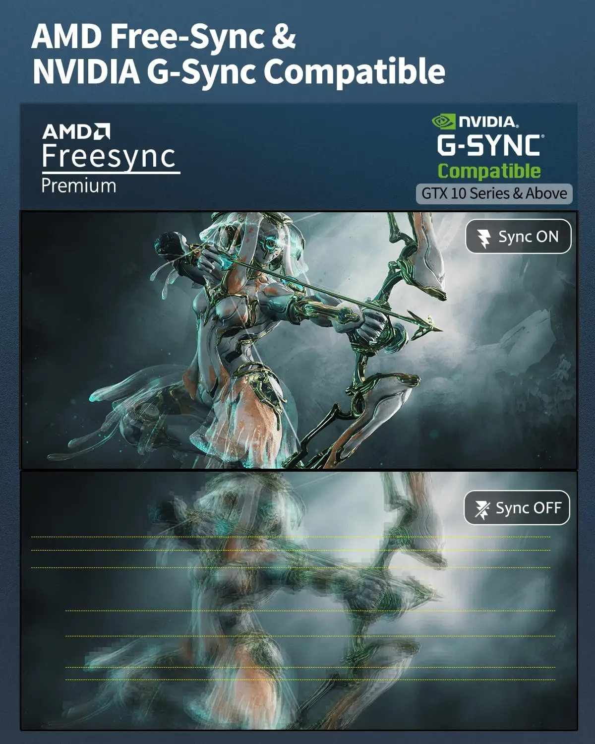 - Supports AMD FreeSync and NVIDIA G-Sync for tear-free gaming