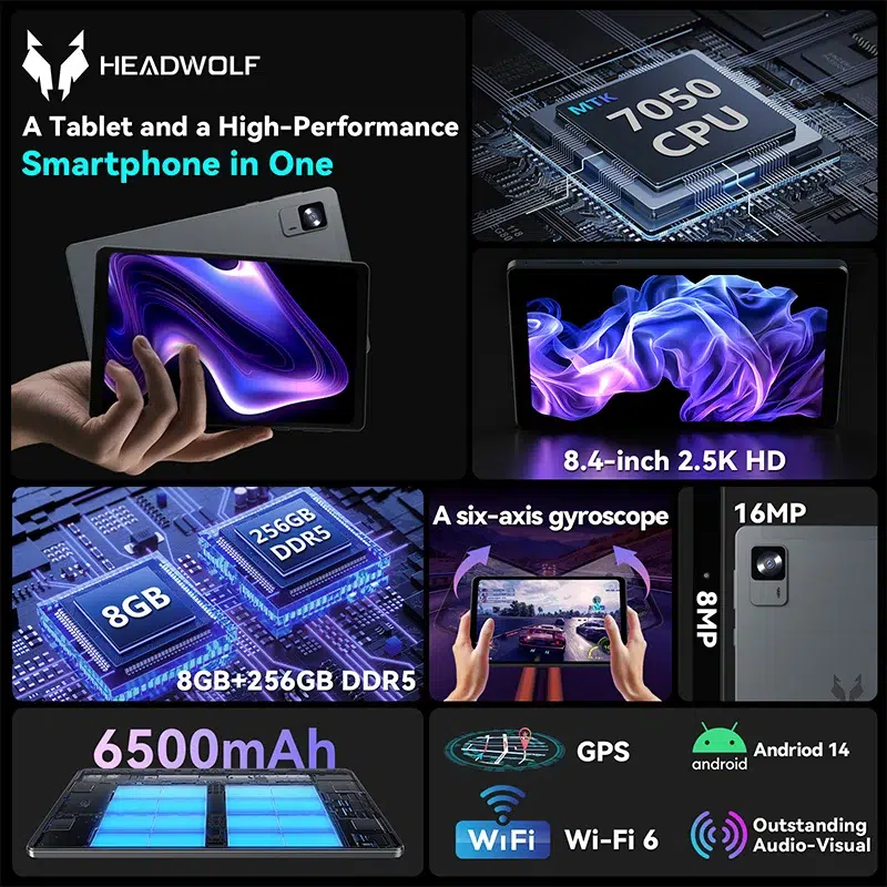 6 reviews for Headwolf FPad7 8.4″ Tablet, 16GB+256GB, Android 14, 4G LTE
