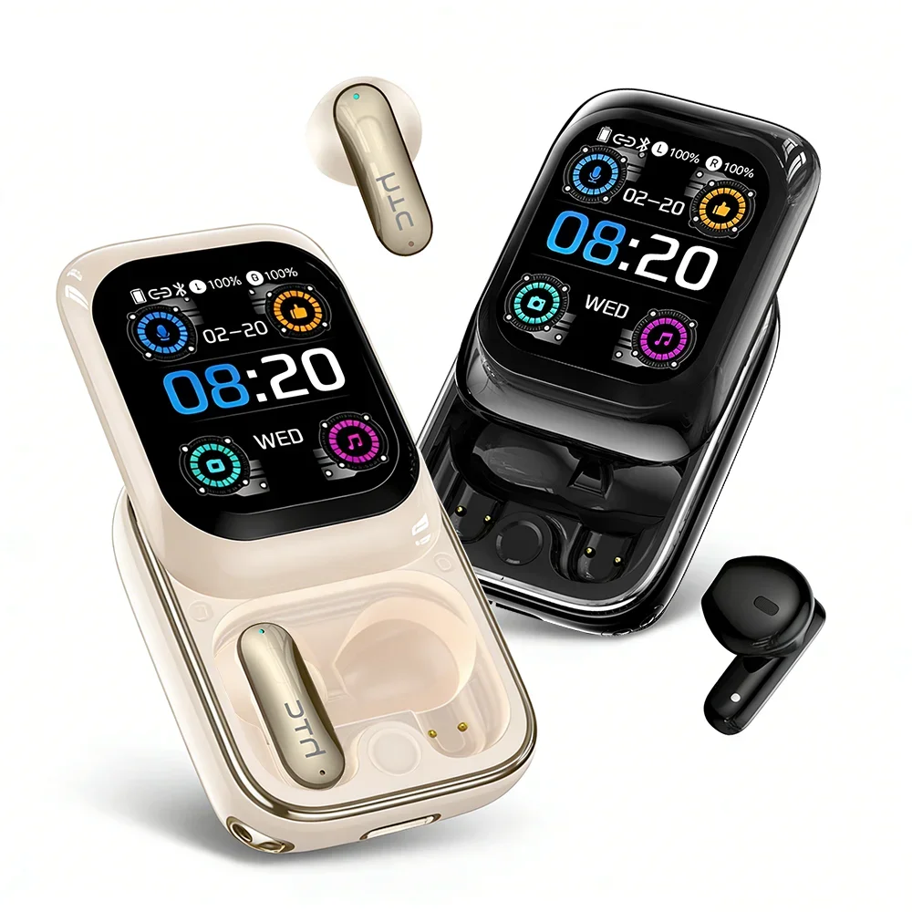 Step into the future of wireless audio with the HTC NE48 Bluetooth Earbuds, featuring a sleek side-sliding flip case, HD touchscreen, and real-time AI translation. Perfect for travel, work, gaming, or daily listening, these earbuds combine style, comfort, and cutting-edge functionality.