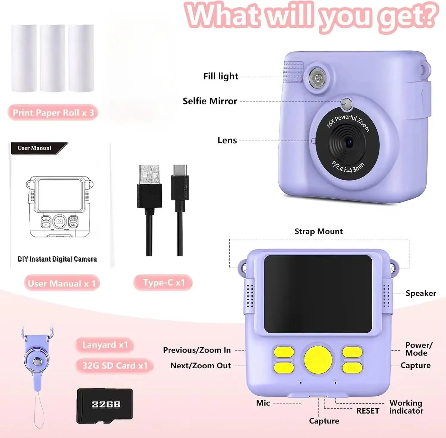 - 1 x Kids’ Digital Camera with Printing Function