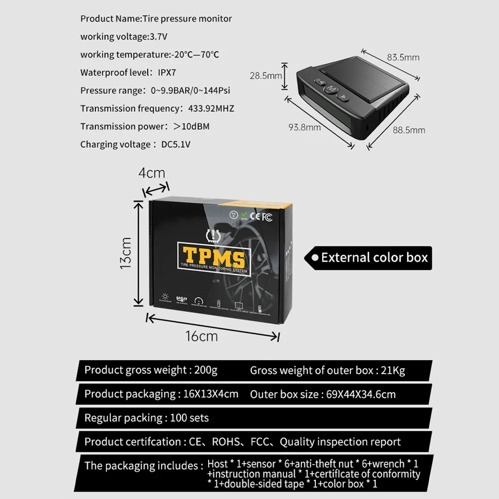 The bright digital LCD screen clearly shows tire pressure and temperature in real time, making it easy to check your tire condition at a glance while driving.