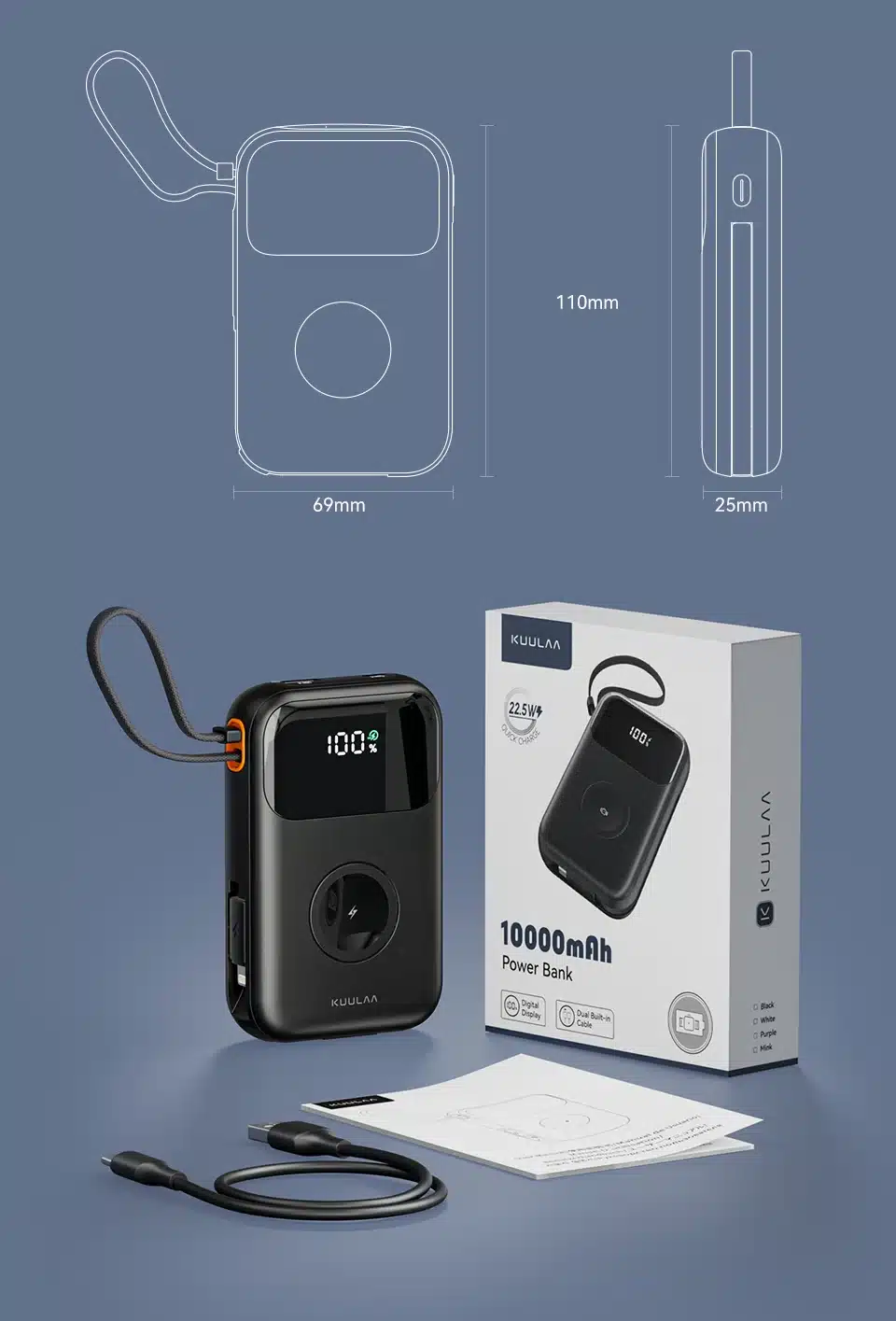 Product Name:KUULAA Dual Cables 3-in-1 Power Bank