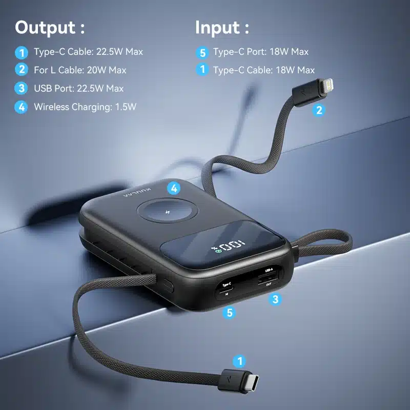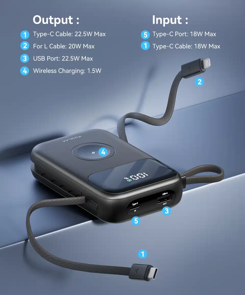 KUULAA Dual Cables 3-in-1 Power Bank