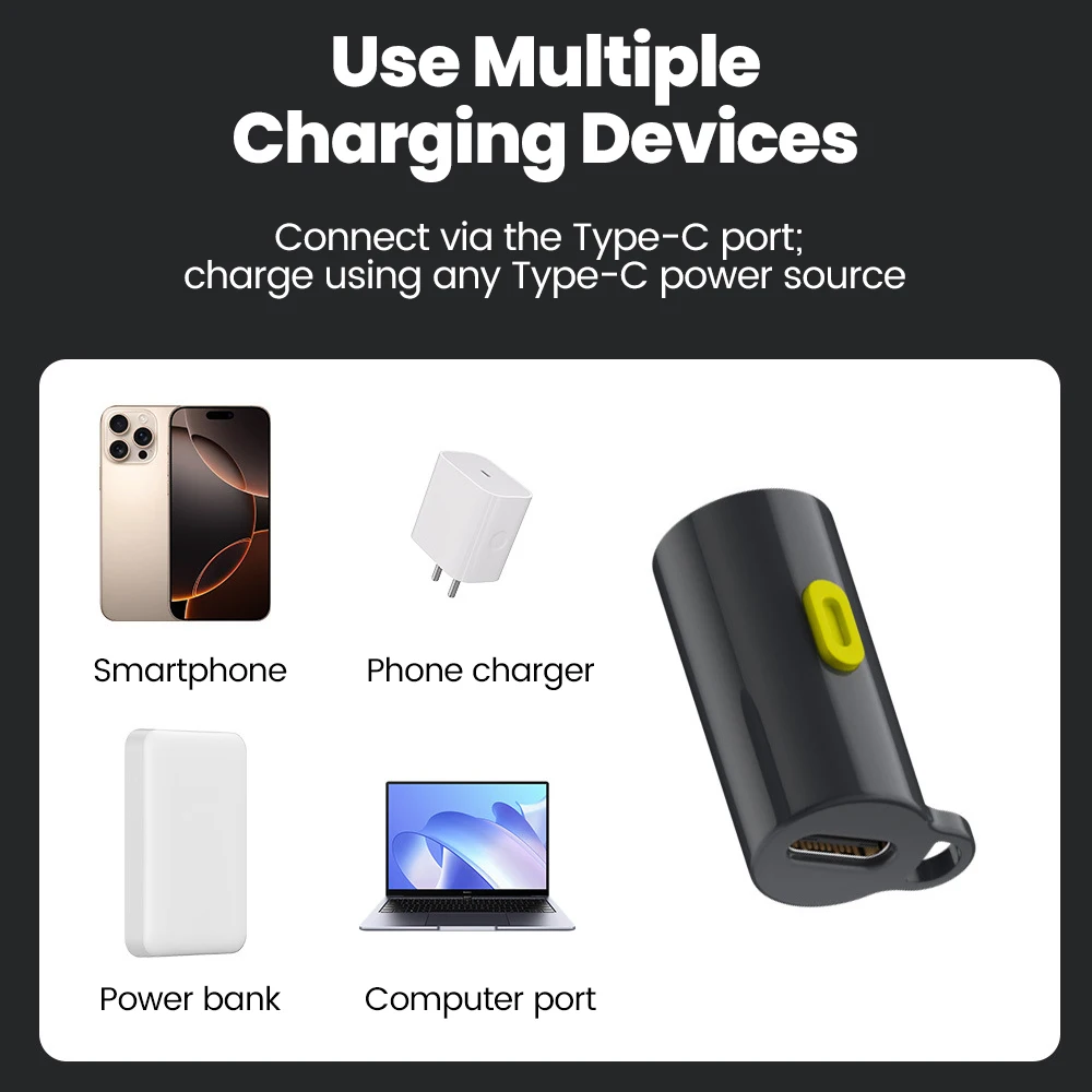 Features Type-C male + Type-C female design — plug directly into your device or charging port for quick and easy lighting access. 📱💻