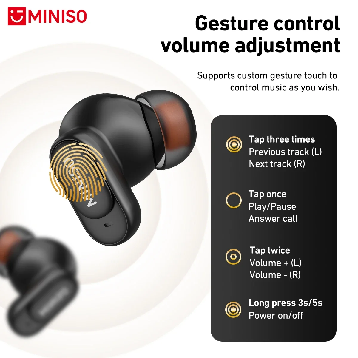 Experience crisp HiFi stereo sound with the MINISO MS105 Bluetooth Earphones. These lightweight earbuds (8.5g) combine metal and silica gel for comfortable, durable wear. Featuring Bluetooth 5.3 connectivity, enjoy a stable wireless range up to 10 meters and touch controls for easy operation.
