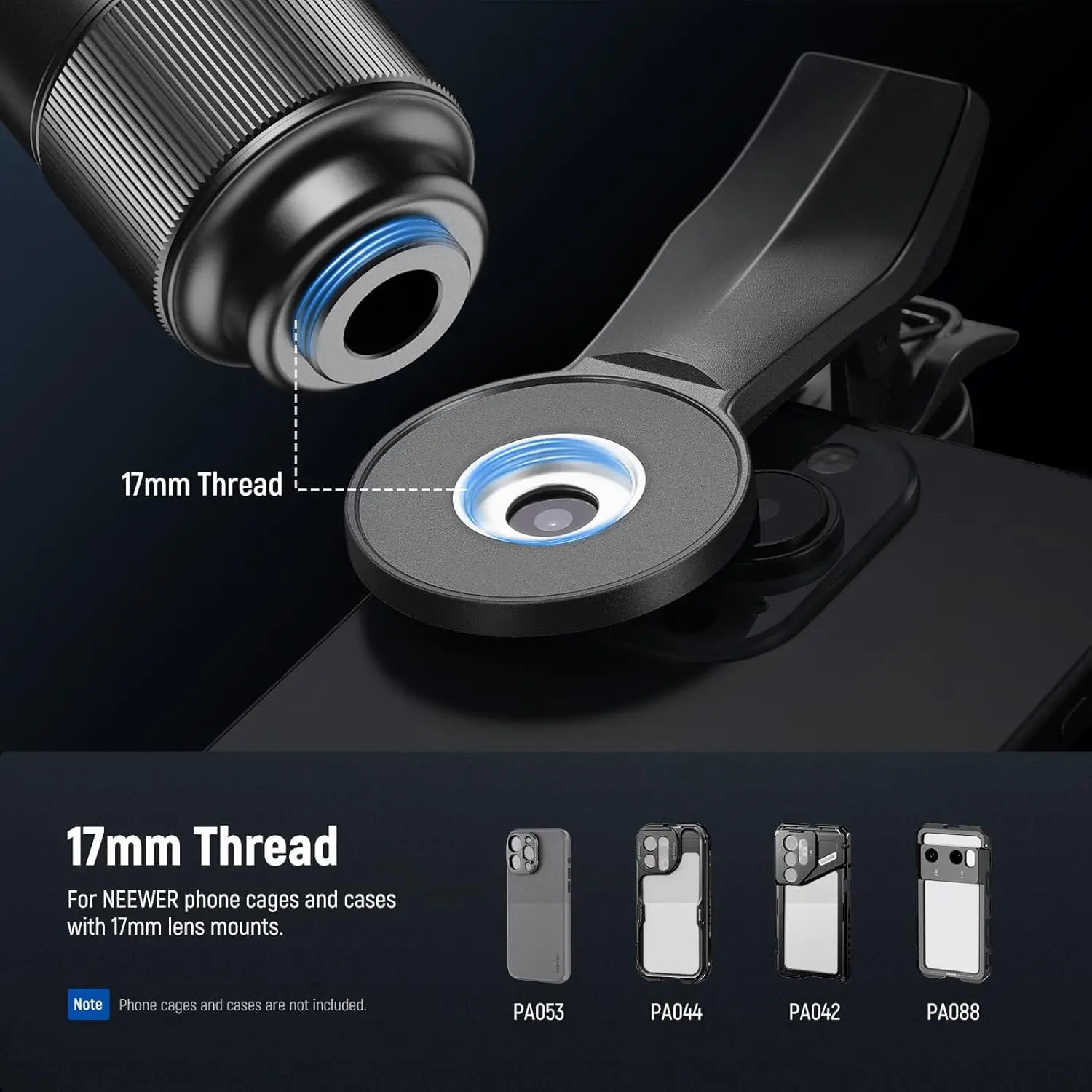 • 17mm Threaded Lens Clip securely attaches the lens to your phone or compatible NEEWER phone cages, cases, and backplates, ensuring stable shooting.