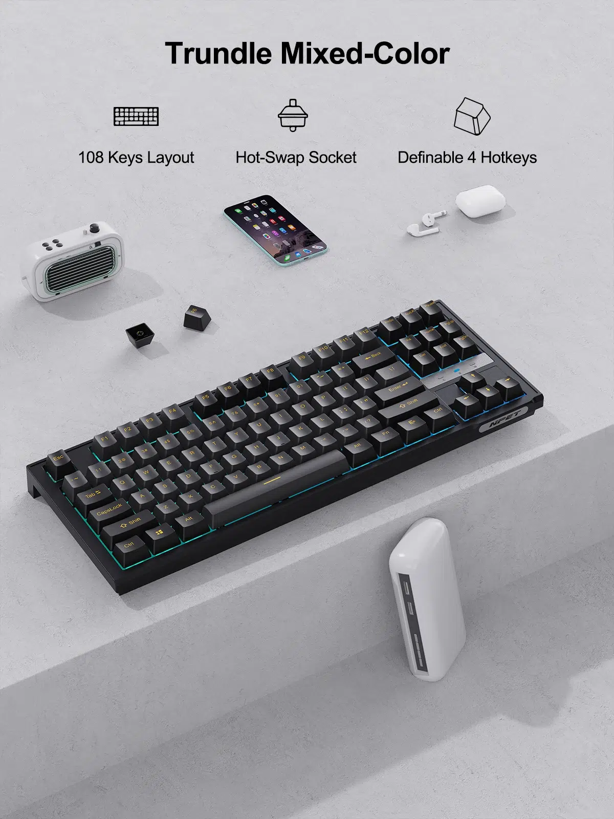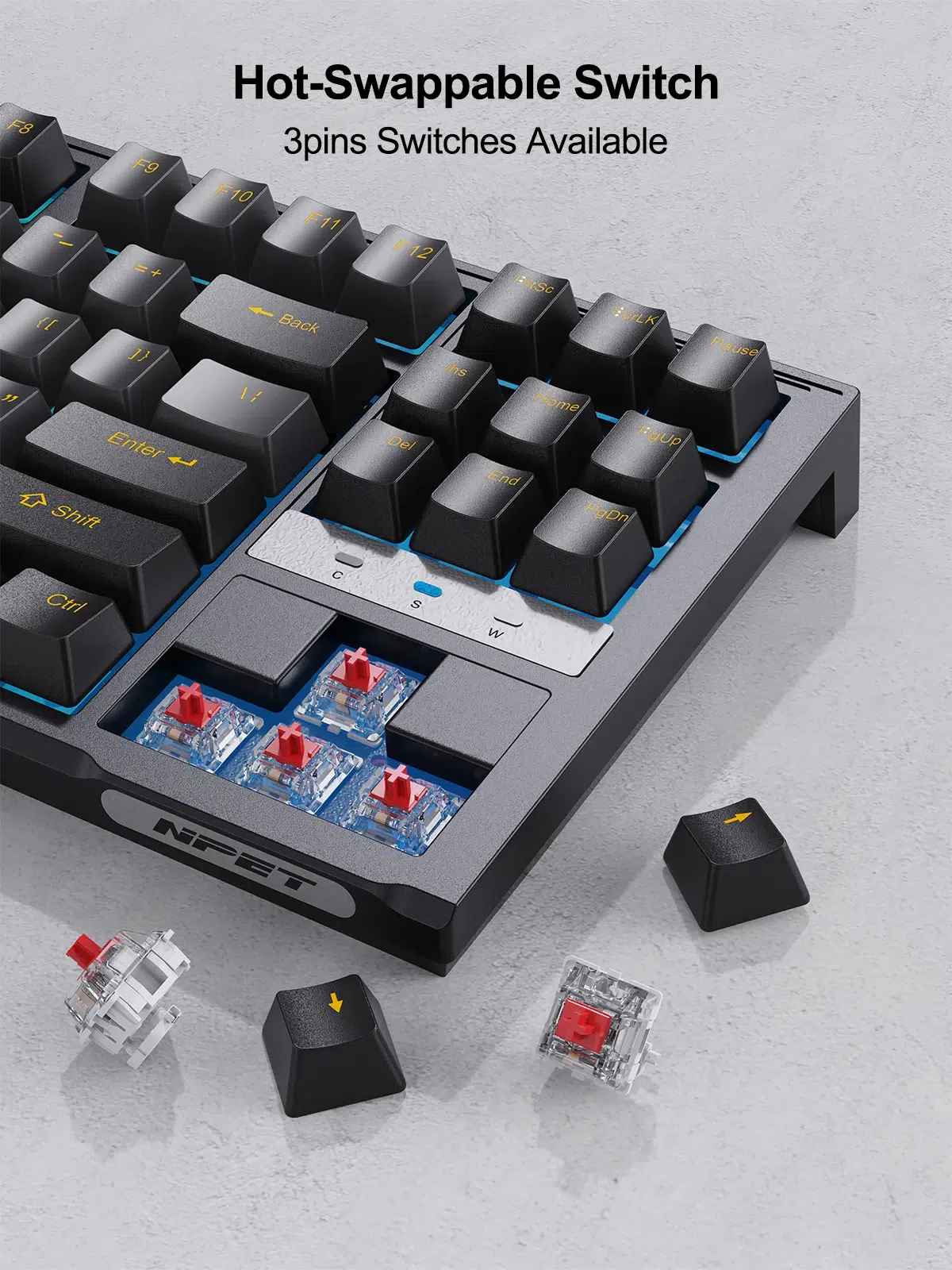NPET 87 Keys RGB Mechanical Keyboard, Hot Swappable Design