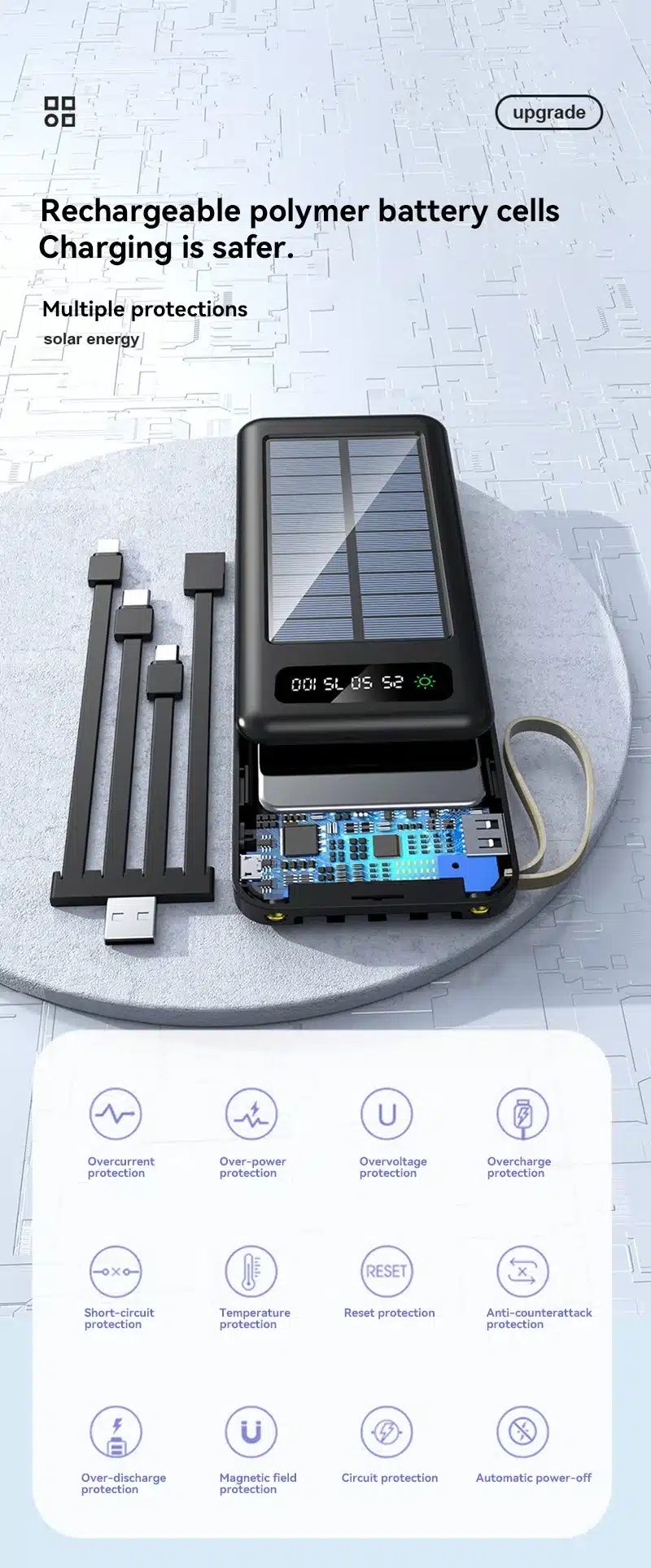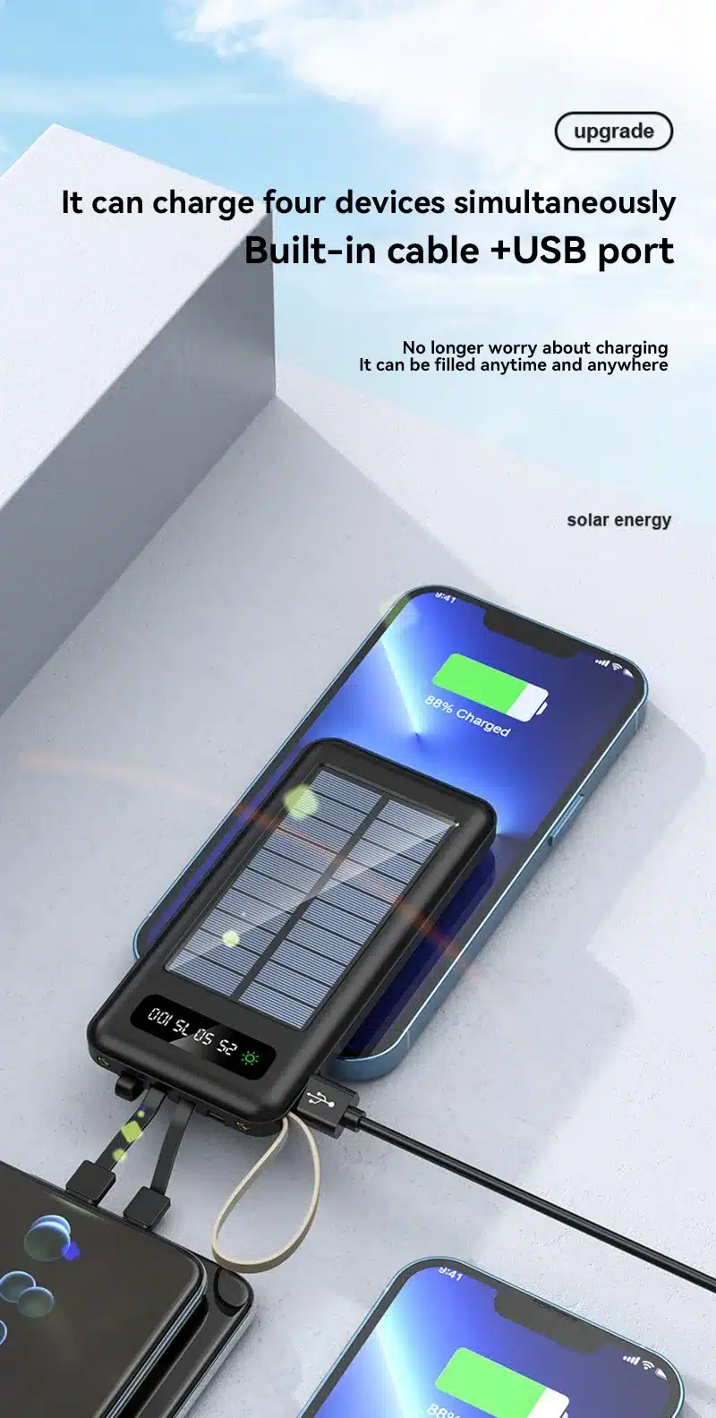 OnePlus Solar Power Bank 50000mAh Large Capacity Mobile Power Fast Charging Battery Dual USB 4 Cables For iPhone Samsung Huawei