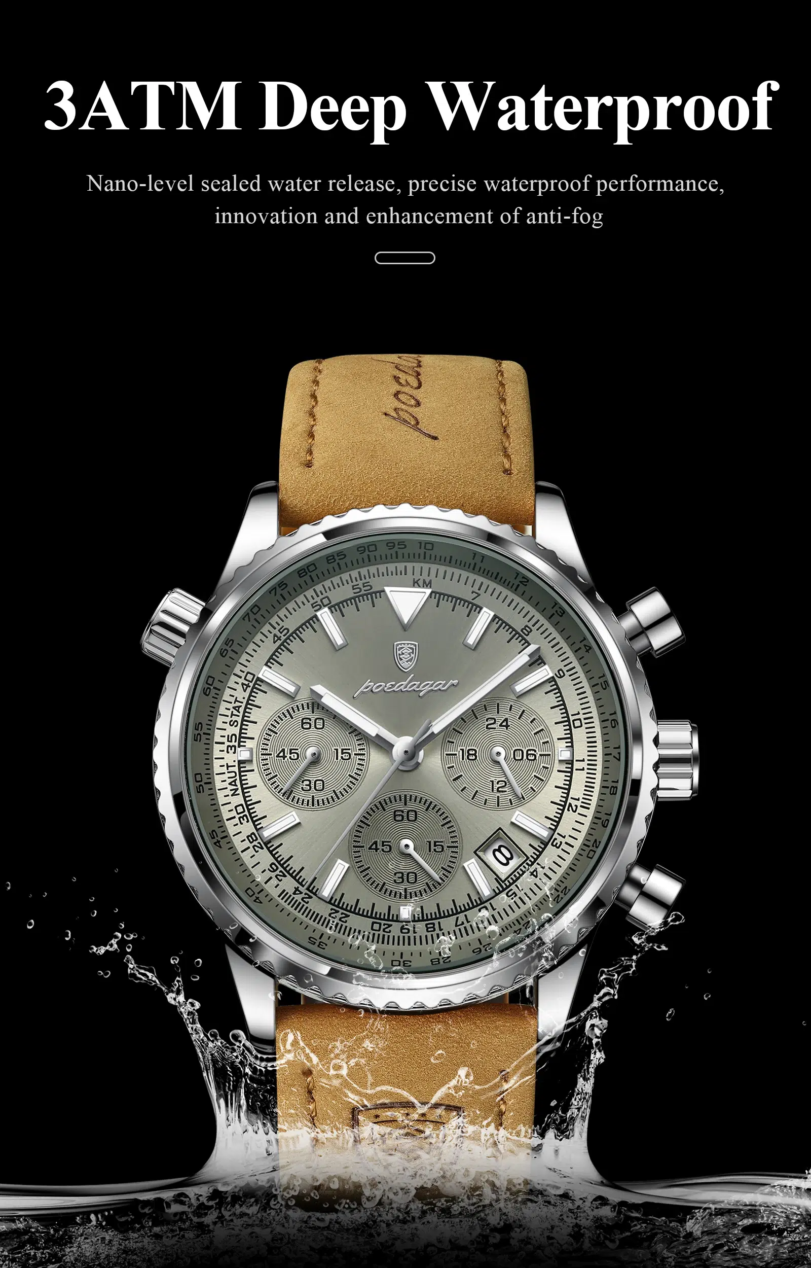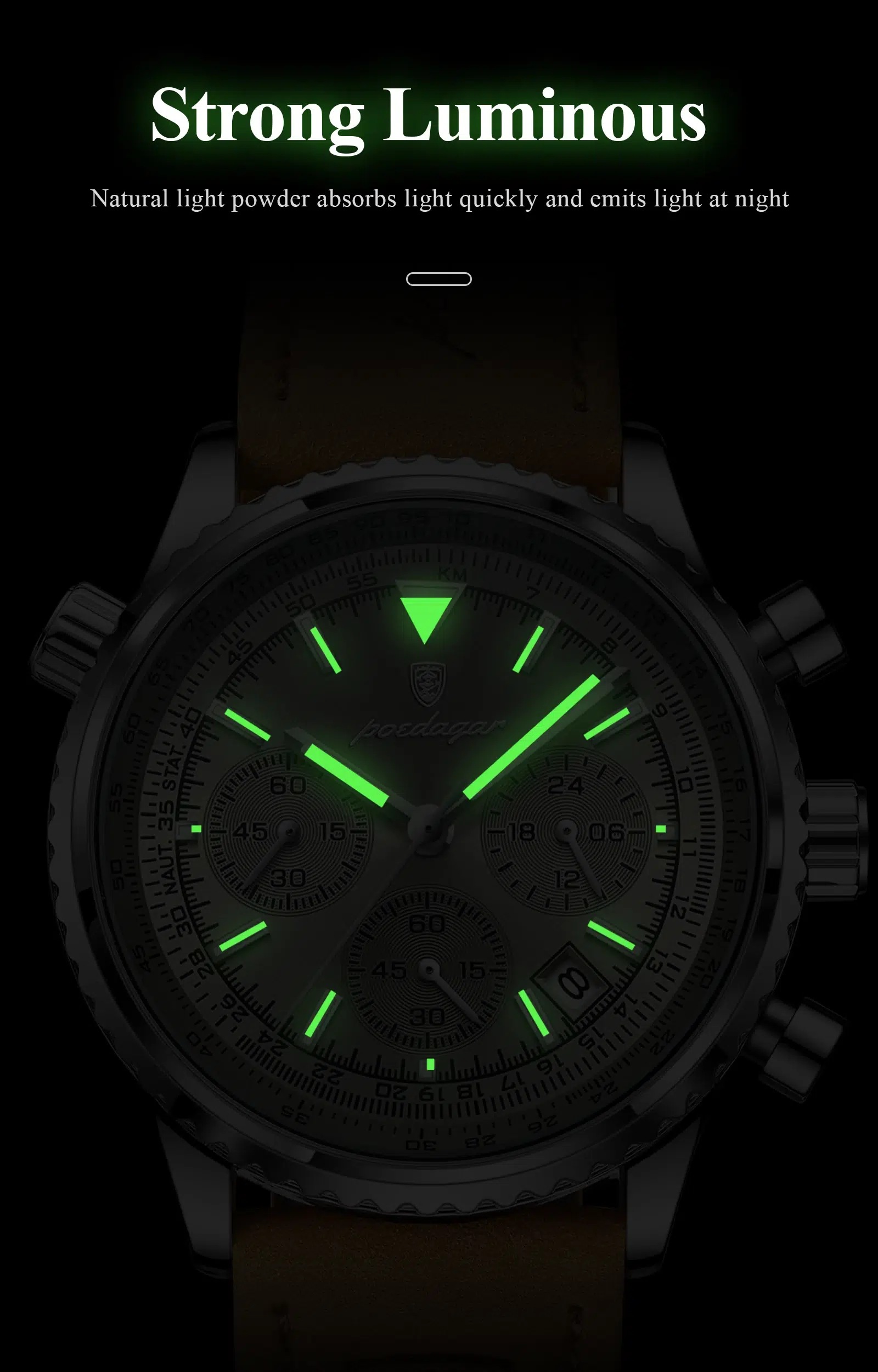 8 reviews for POEDAGAR Men’s Chronograph Leather Watch – Waterproof, Luminous