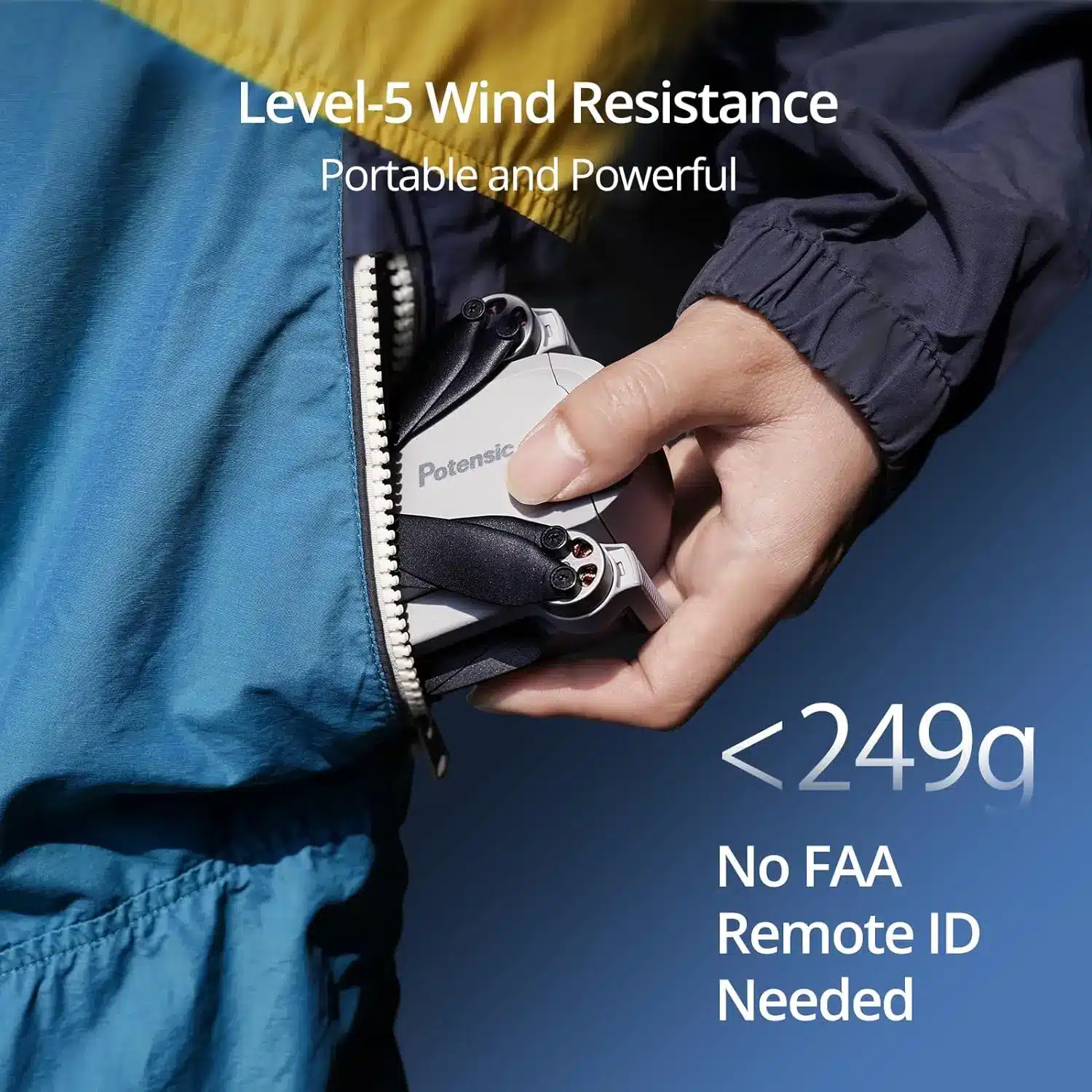 Compact, intelligent, and beginner-friendly — the Potensic Atom SE drone is the perfect entry point into aerial photography. Weighing under 249g, this ultra-light drone offers 4K video at 30fps, Level 5 wind resistance, and a 4-kilometer transmission range with GPS-assisted smart features, making it ideal for travel, content creation, and hobby flying.
