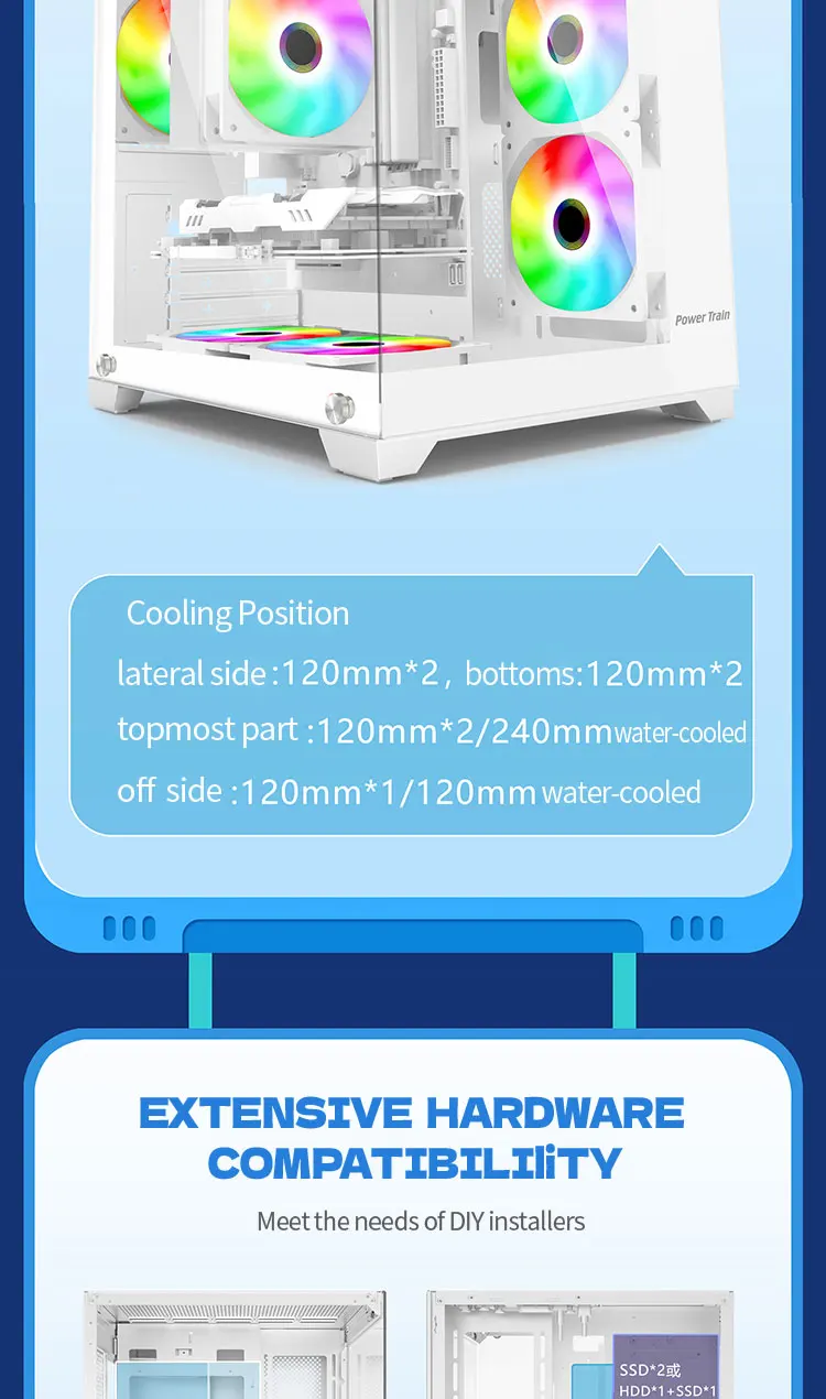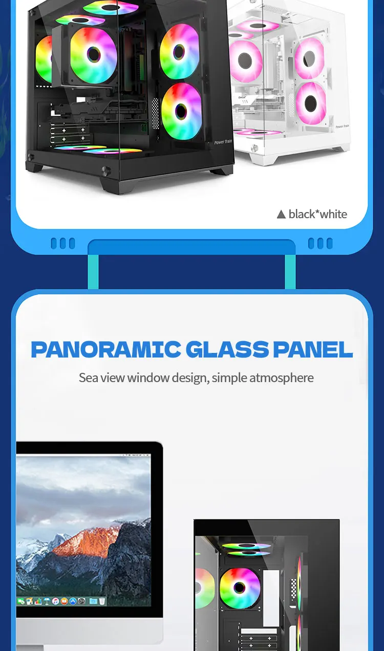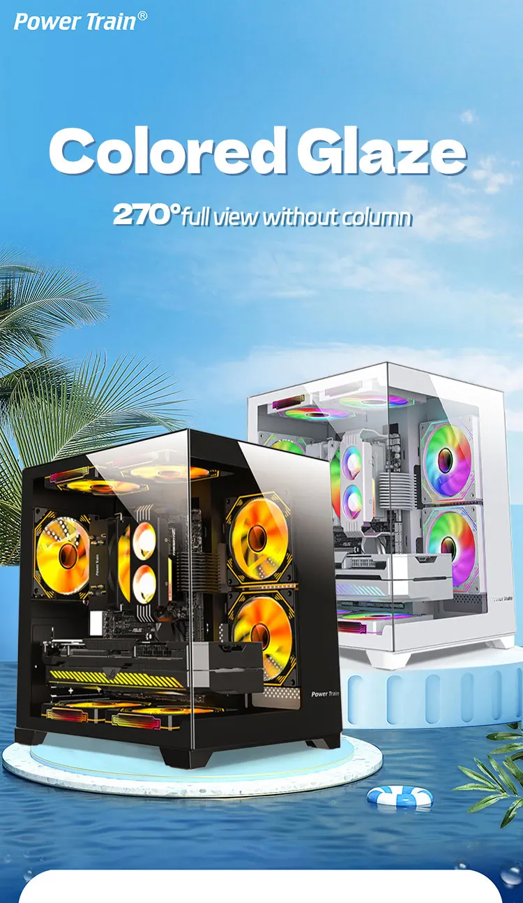 Power Train Coloured Glaze 270° Sea View PC Case 240 Cooler