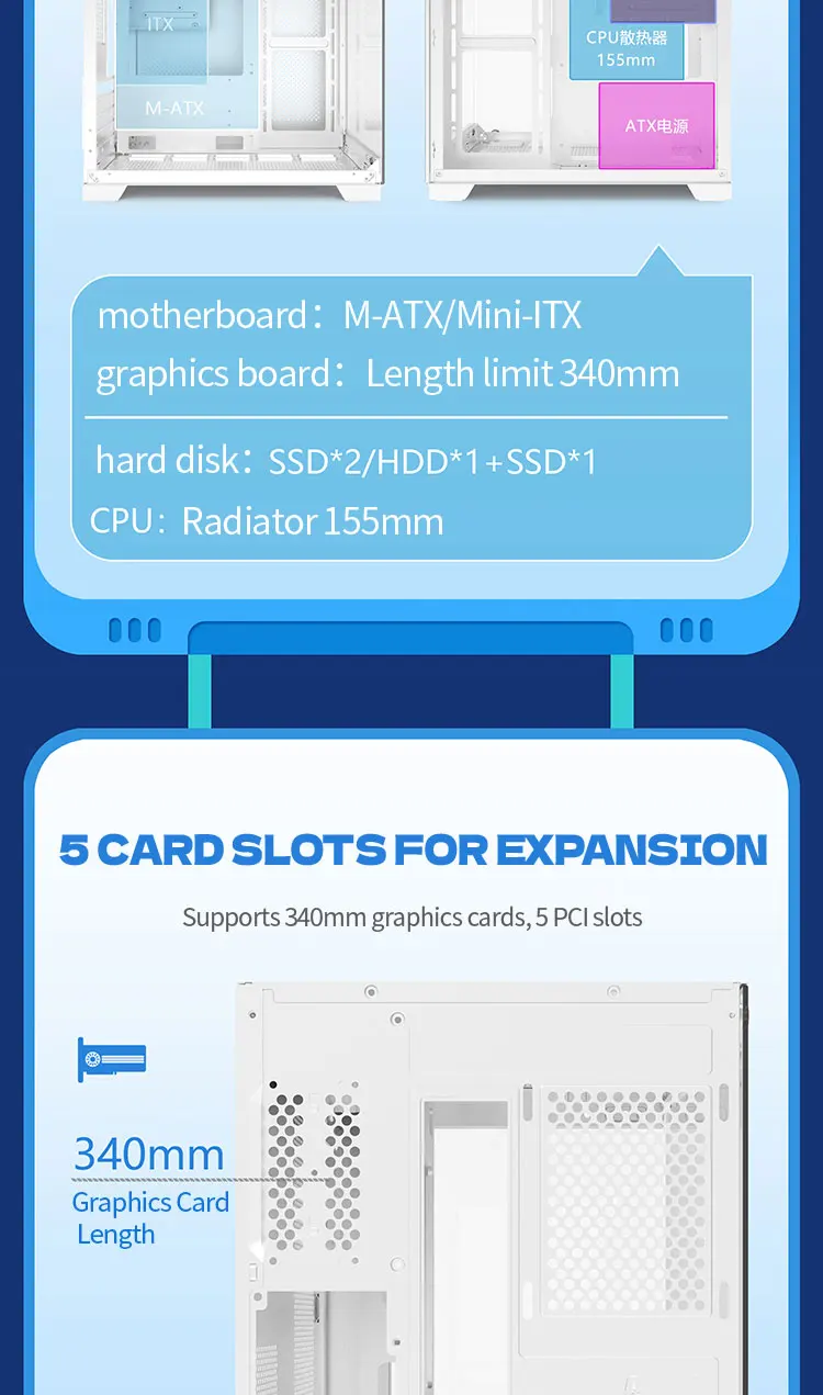 This case supports Micro-ATX and Mini-ITX motherboards, making it perfect for compact gaming PCs, home workstations, and professional desktop builds. With support for up to 340mm graphics card length, you can install high-performance GPUs for gaming, design, and multitasking without space limitations.