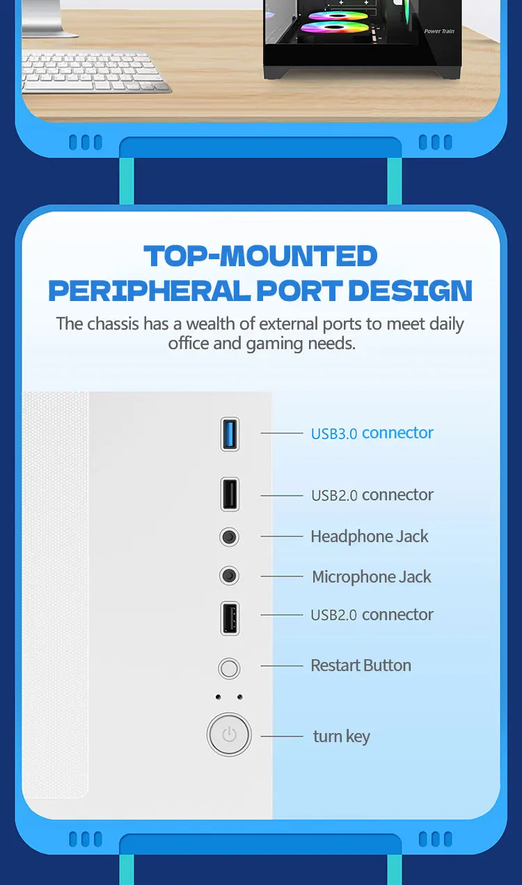 The Power Train Coloured Glaze Horizontal Desktop Case is a premium choice for users who want a clean, modern, and powerful PC build foundation. Designed with iron and tempered glass construction, this chassis delivers strong durability while allowing you to showcase your hardware through the side panel transparent window. Please note that this is only a chassis, and all internal components must be purchased separately.